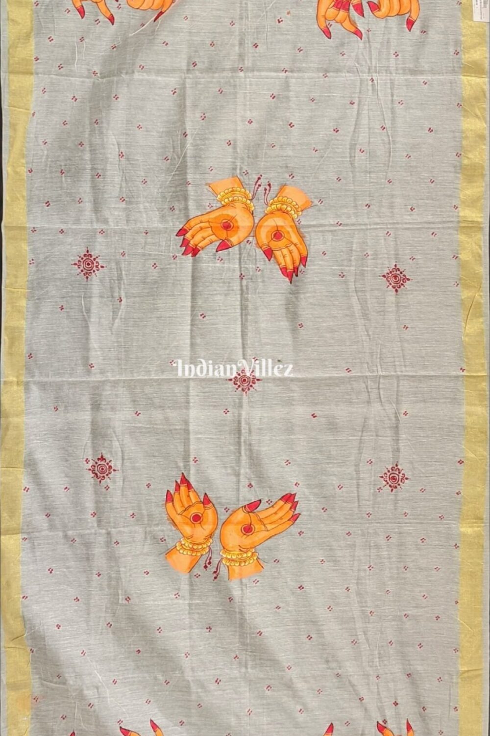 Cream Beige Mudra Theme Hand-Painted Tussar Pattachitra Dupatta