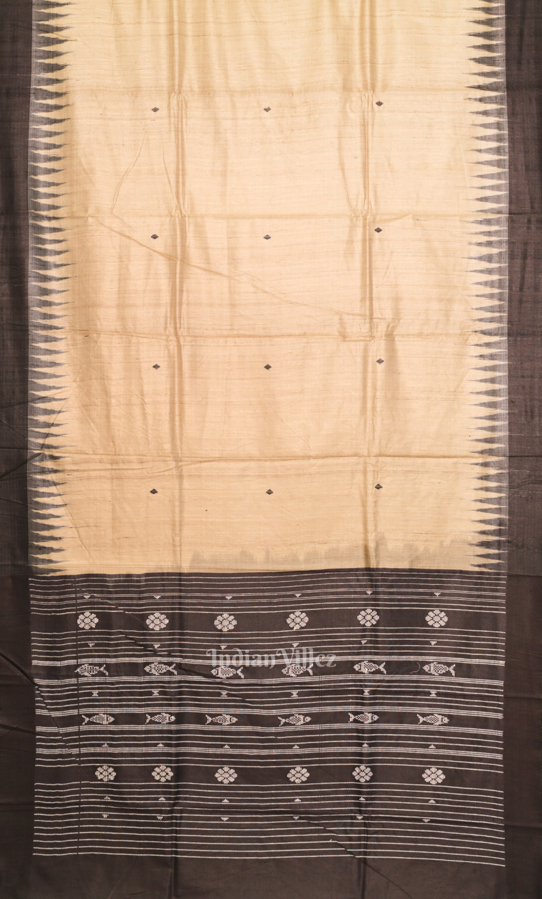 Beige Black Gopalpur Tussar Silk Saree with Fish Motif Anchal