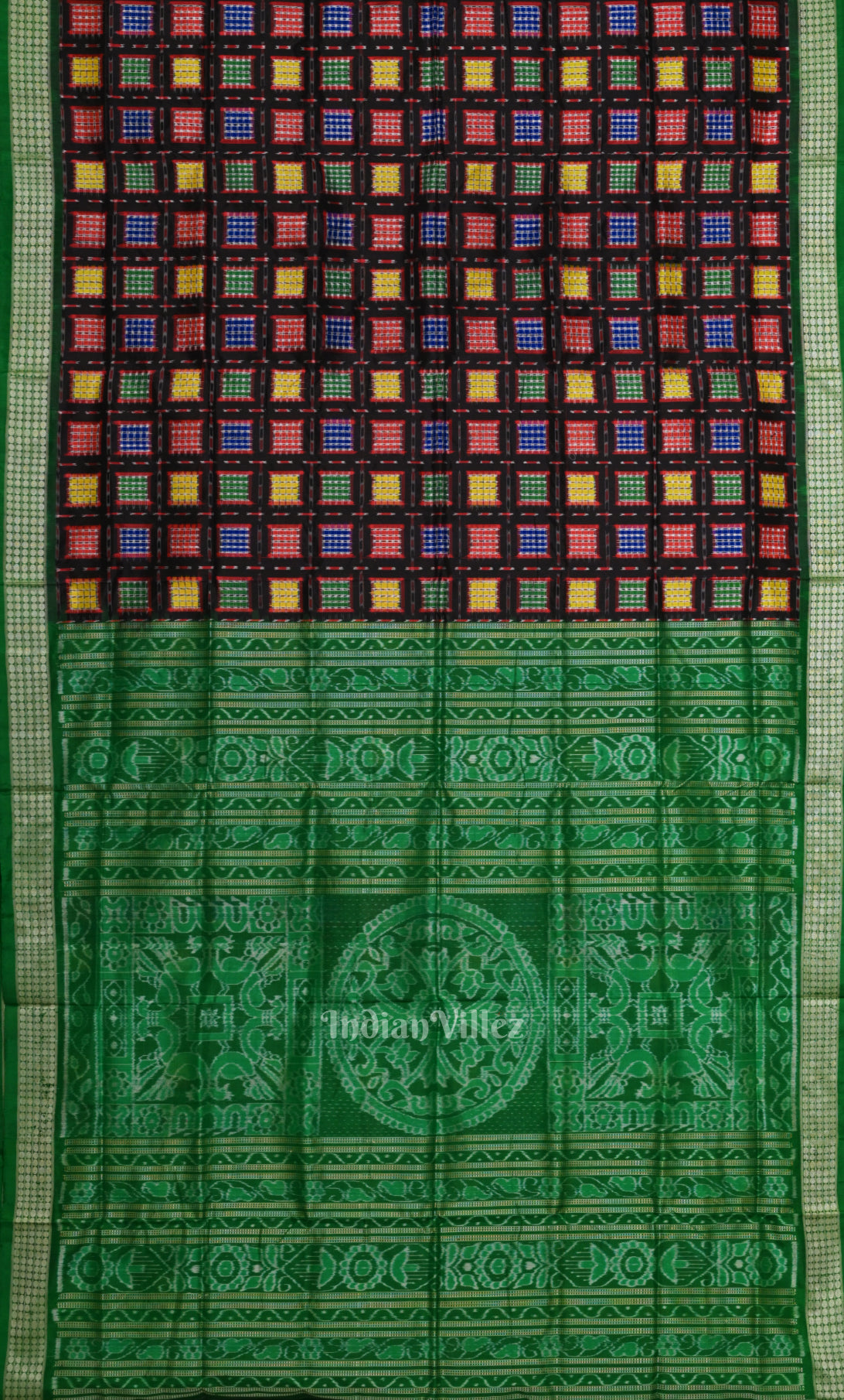 Black Green Ashwini Odisha Ikat Sambalpuri Silk Saree
