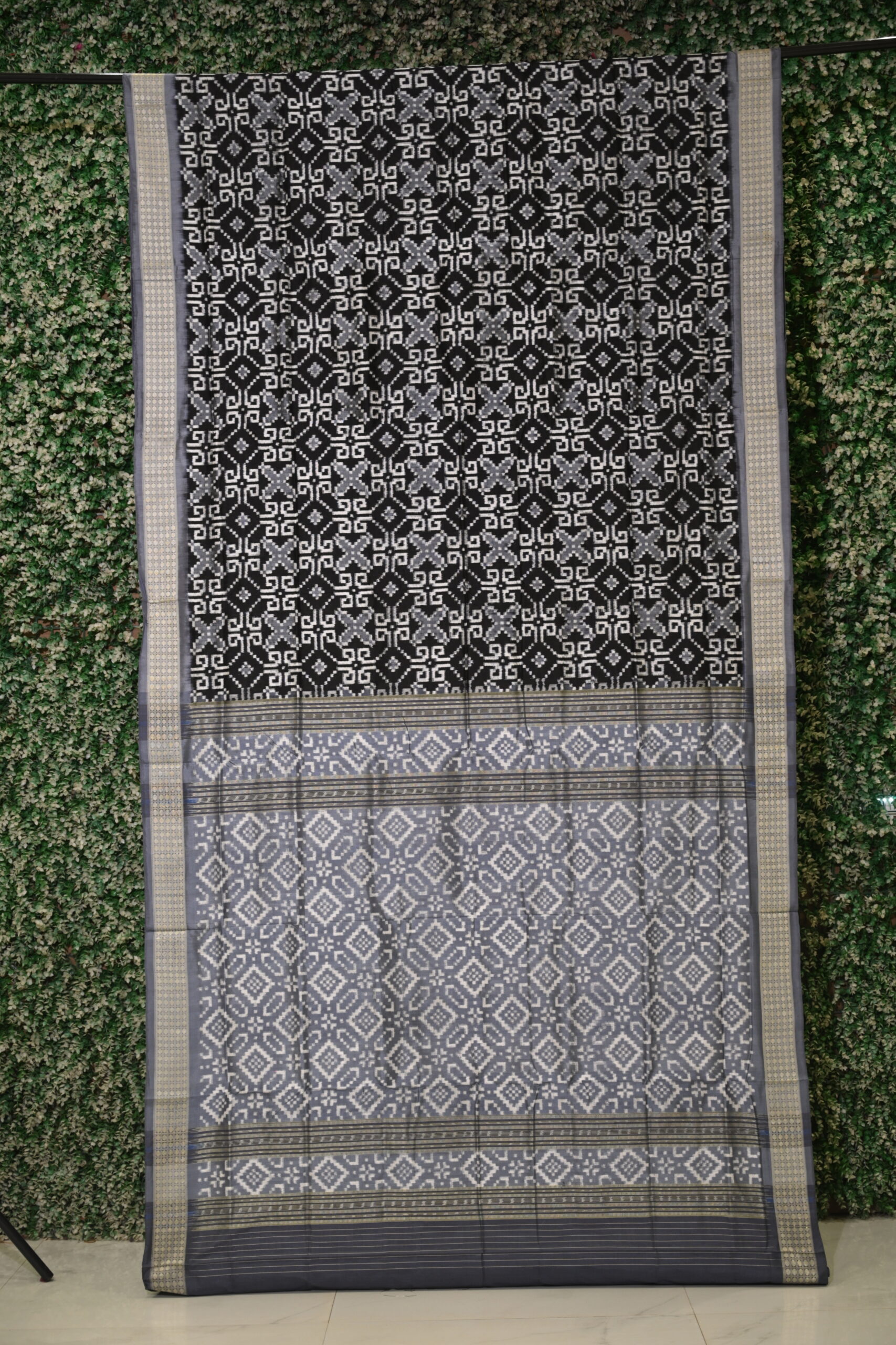 Black Grey Telia Rumal Odisha Ikat Sambalpuri Silk Saree