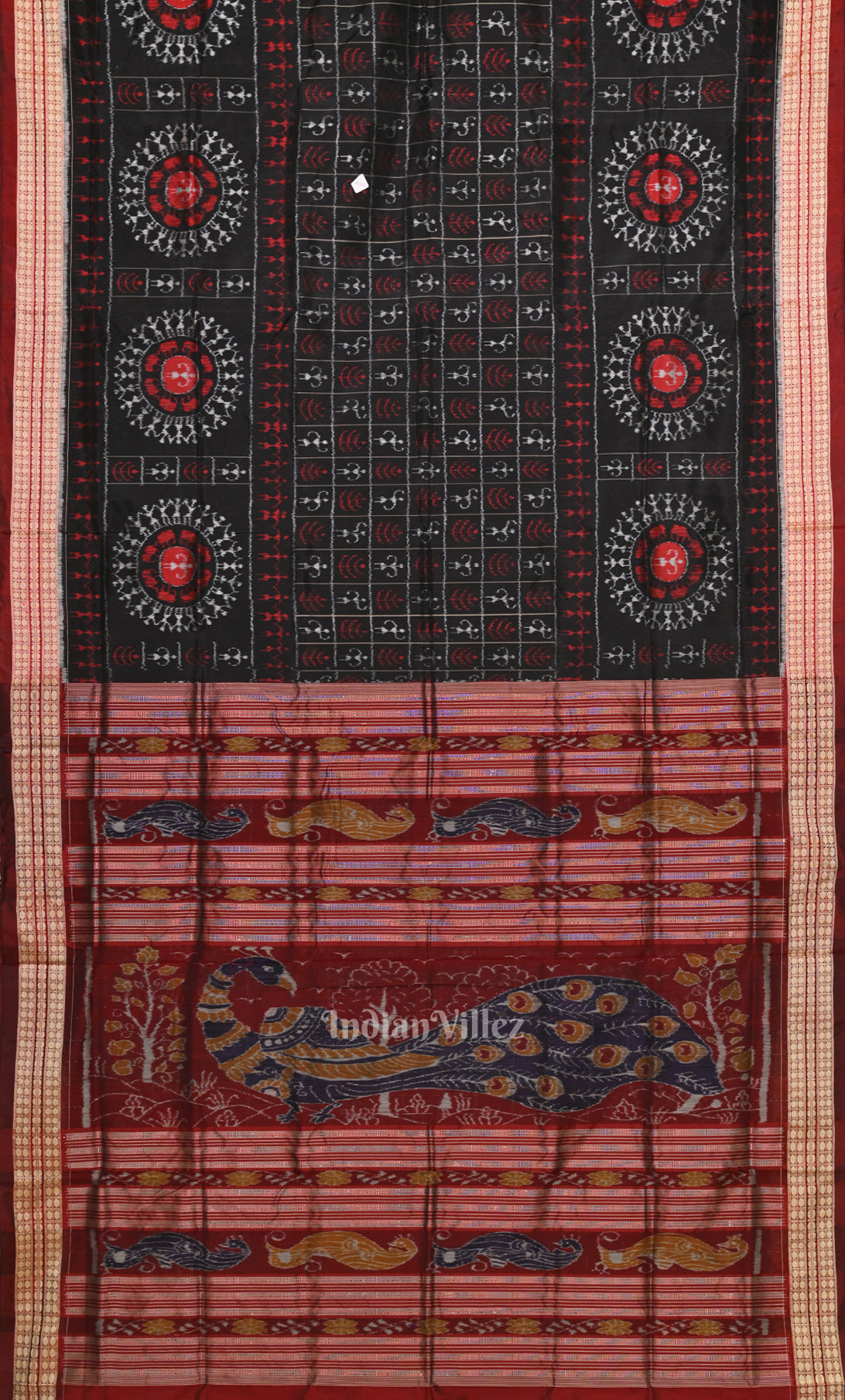 Red Black Mayur Chandrika Odisha Ikat Maniabandha Cotton Saree