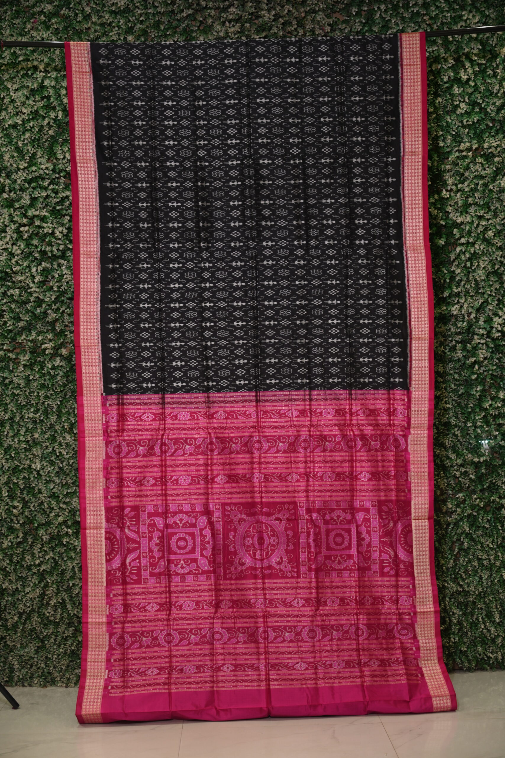 Black Pink Tribal Theme Odisha Ikat Sambalpuri Silk Saree