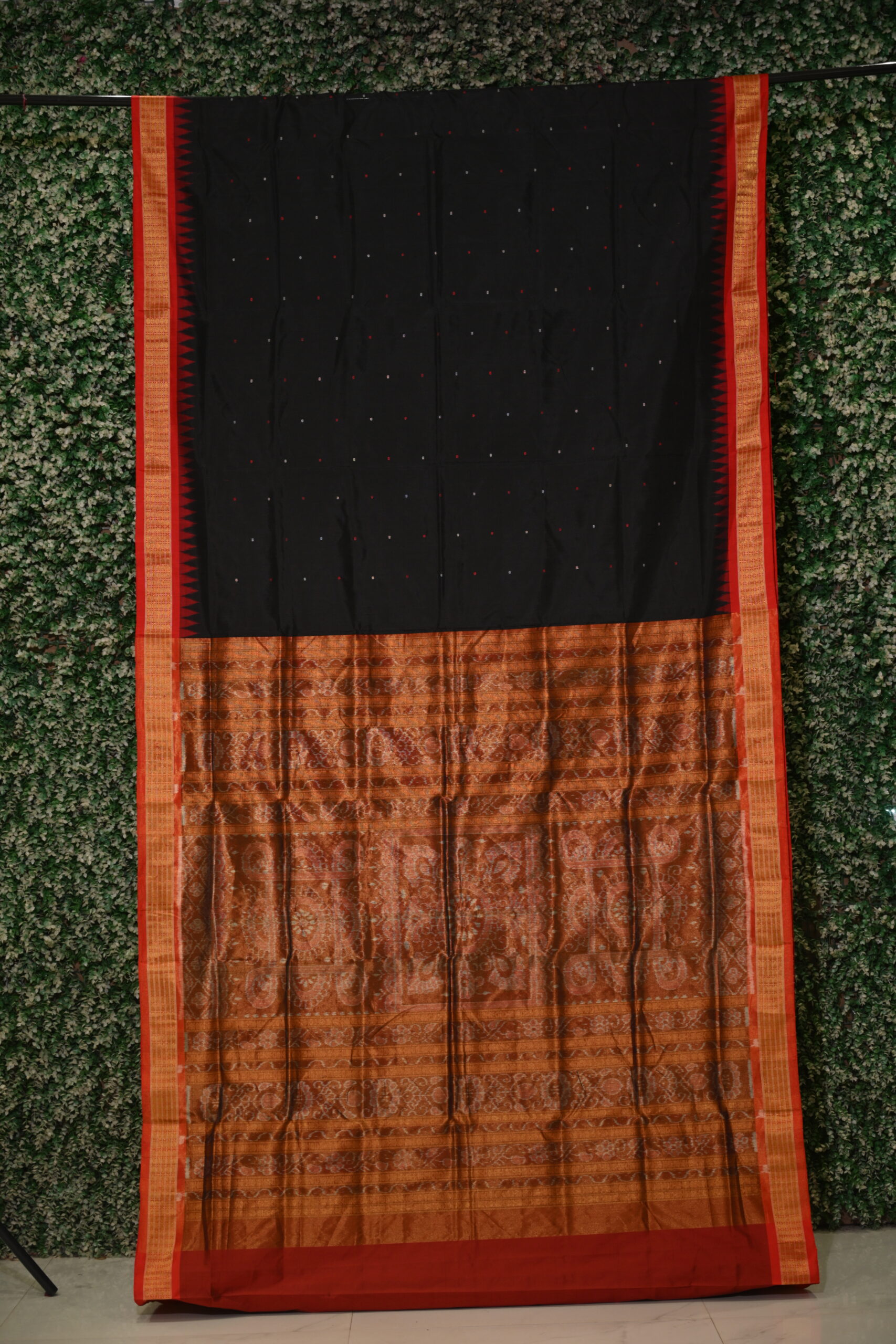 Black Red Buti Odisha Ikat Bomkai Half Tissue Silk Saree