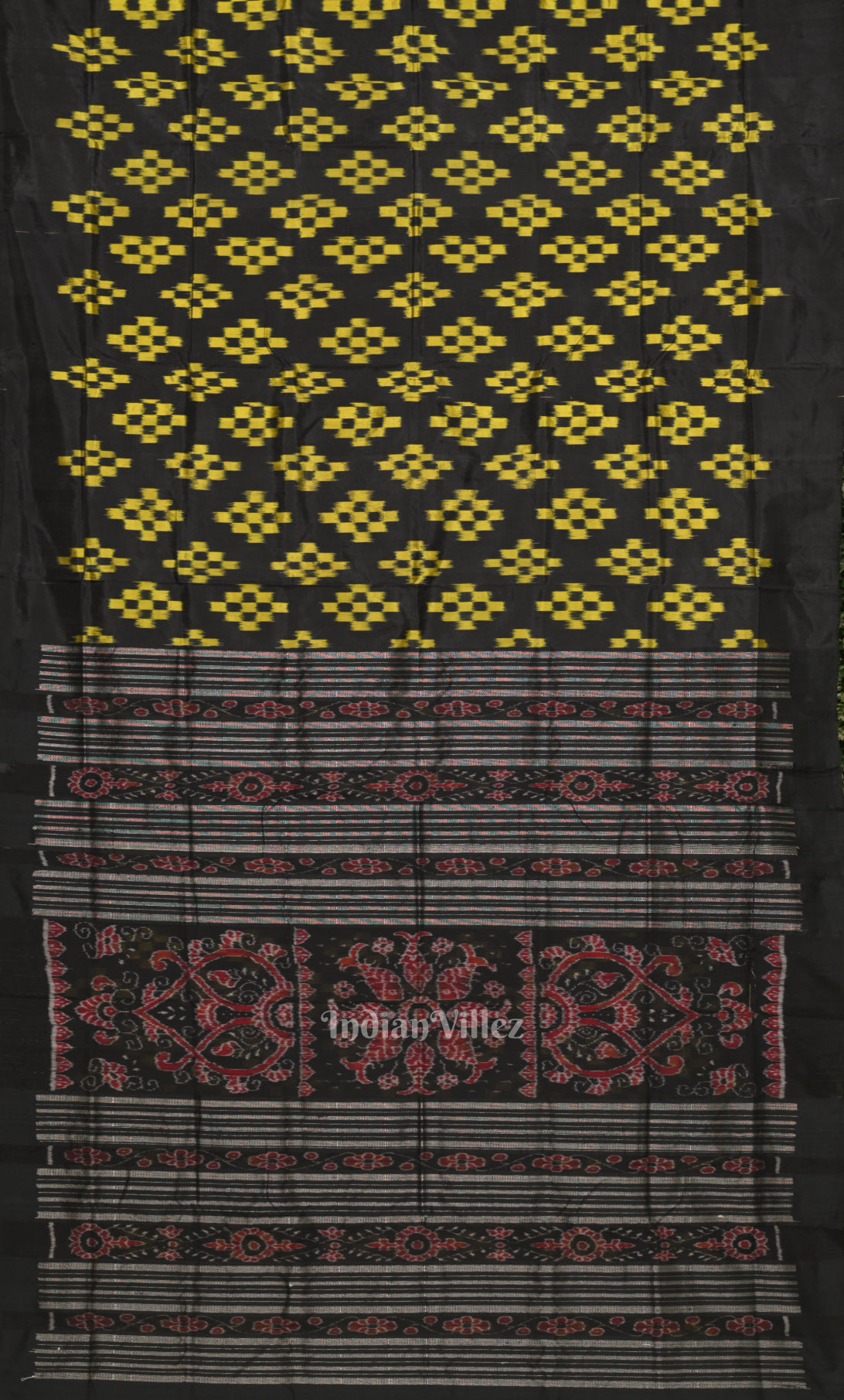 Black Yellow Pasapali Odisha Ikat Contemporary Designer Saree