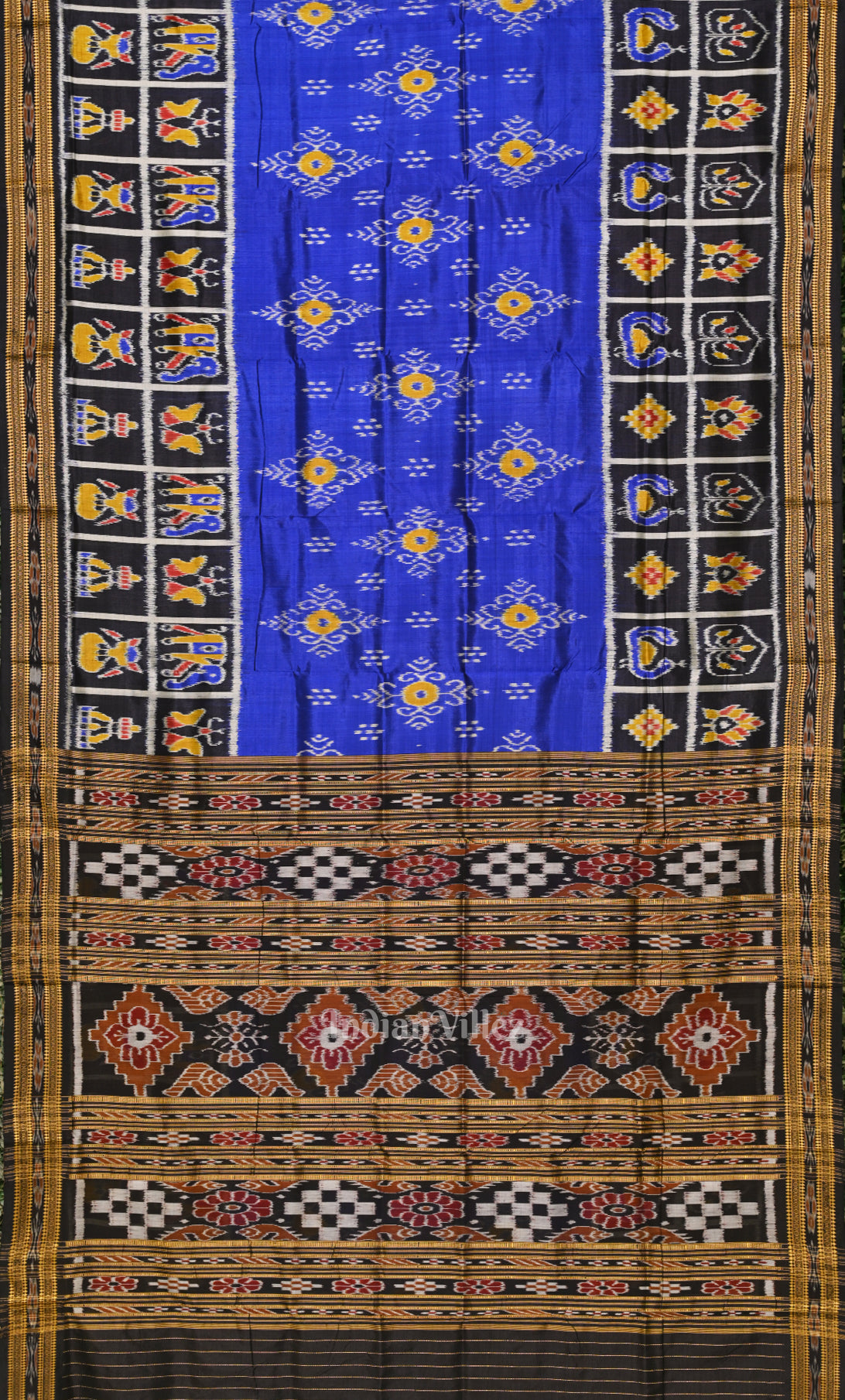 Blue Black Jhoti Theme Odisha Ikat Khandua Silk Saree