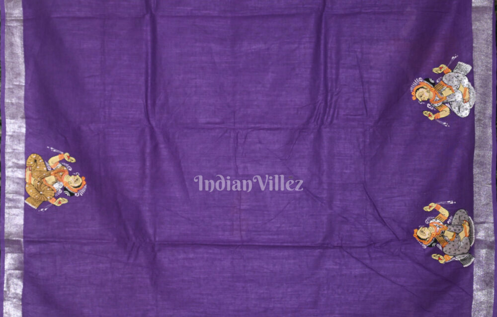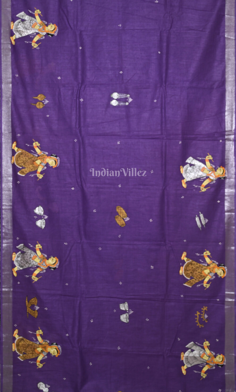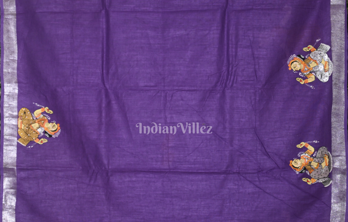 Blue Dandiya Raas Theme Hand-painted Pattachitra Saree -(Linen)