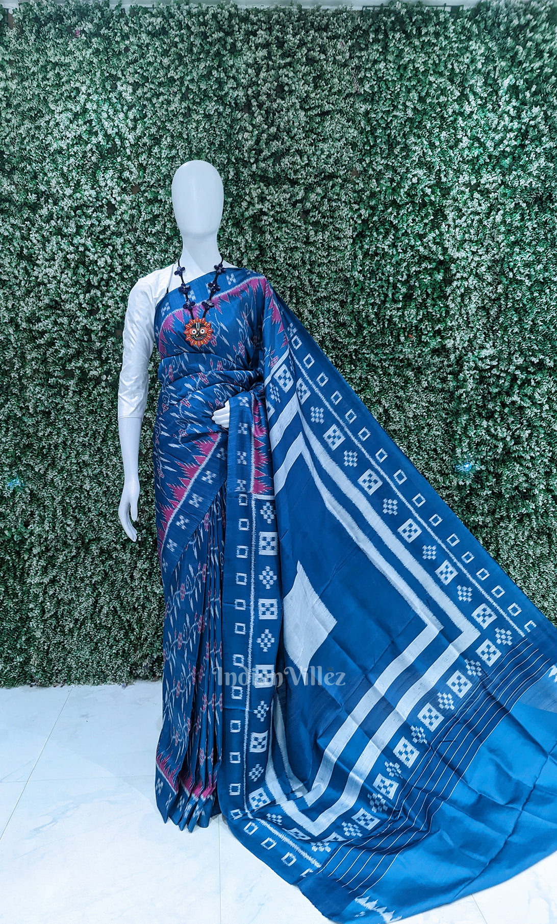 Blue Pink Pasapali Border Odisha Ikat Contemporary Designer Silk Saree
