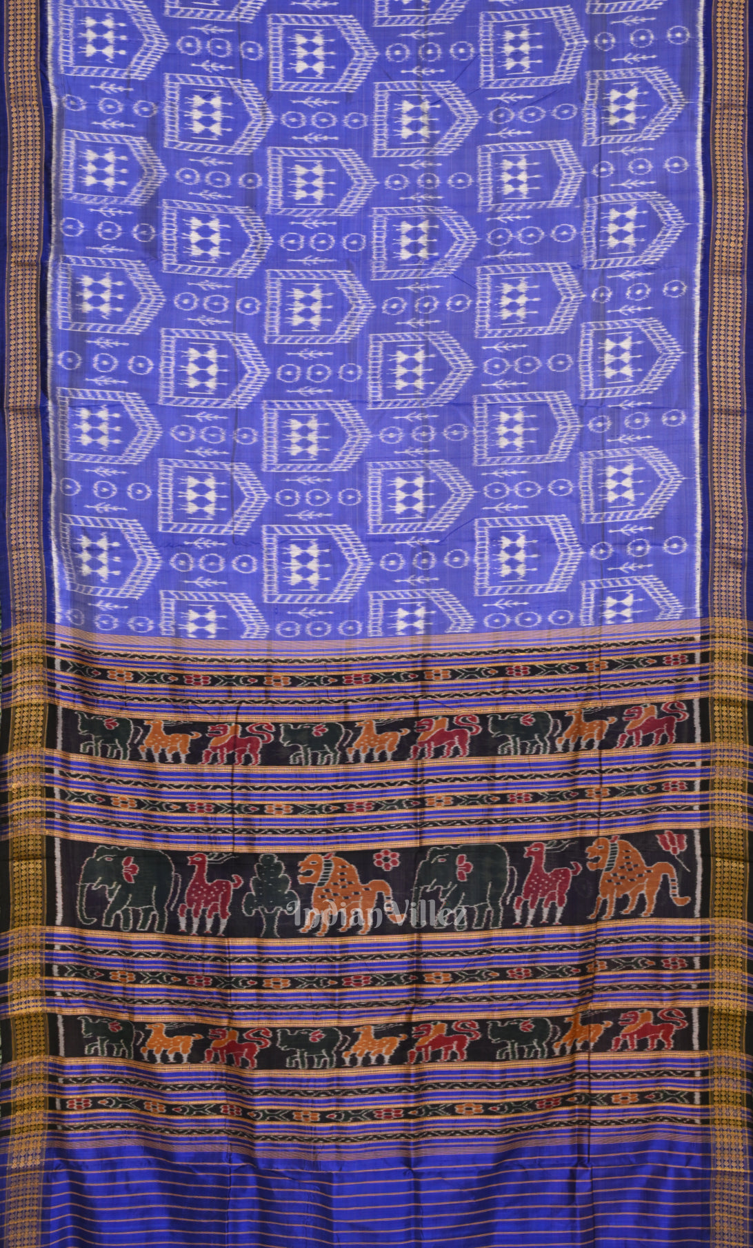 Blue White Tribal Theme Odisha Ikat Khandua Silk Saree