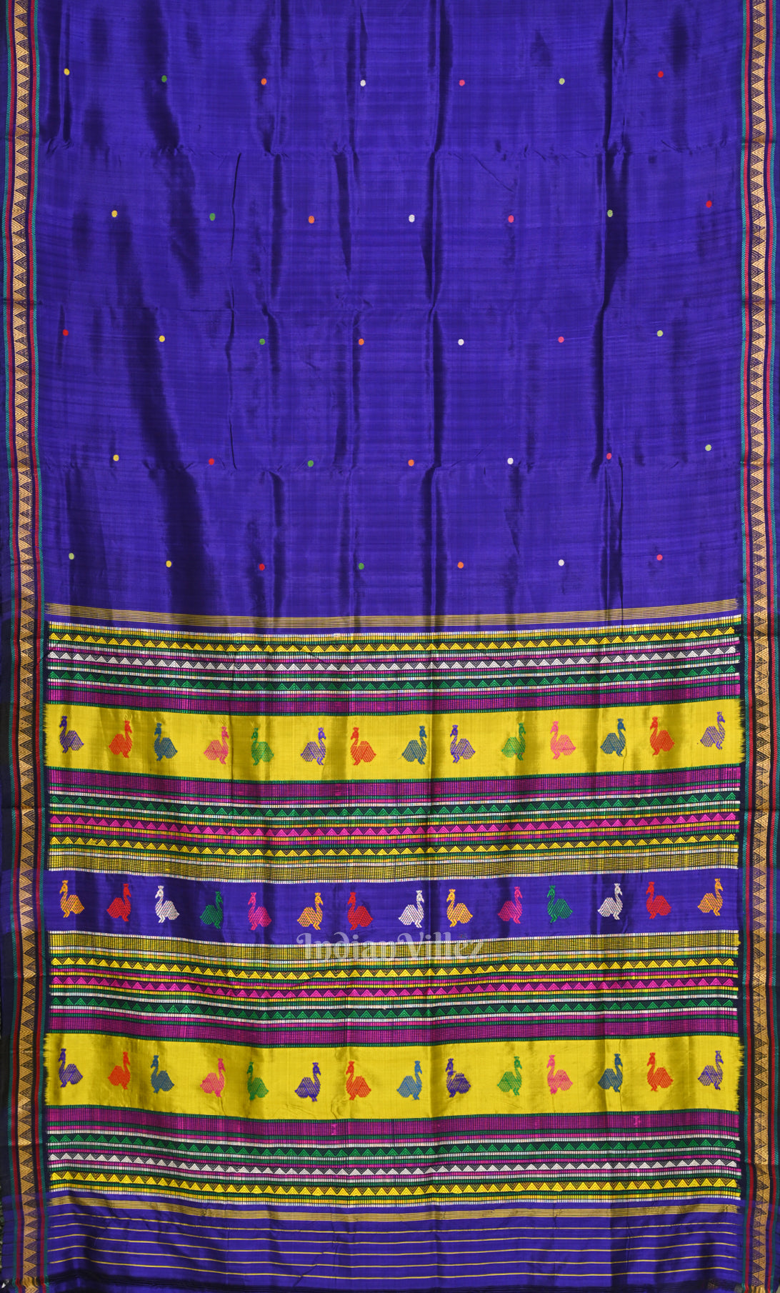 White Navy Blue Mayur Chandrika Odisha Ikat Maniabandha Cotton Saree