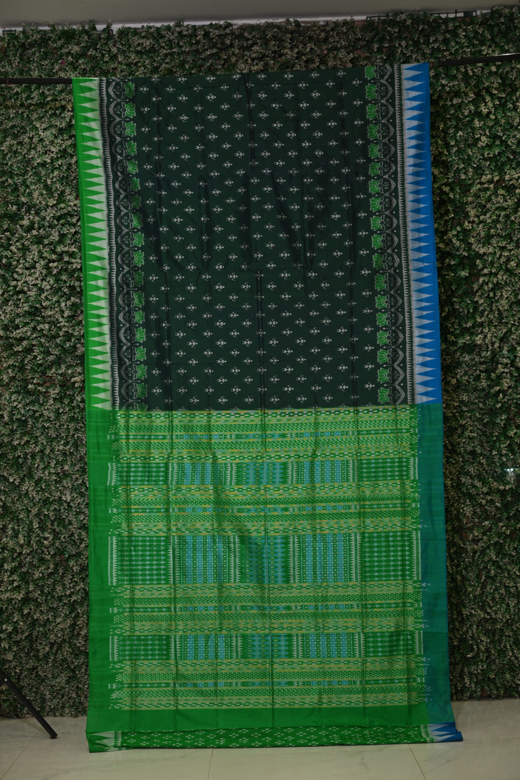 Bottle Green Tribal Theme Odisha Ikat Sambalpuri Silk Saree
