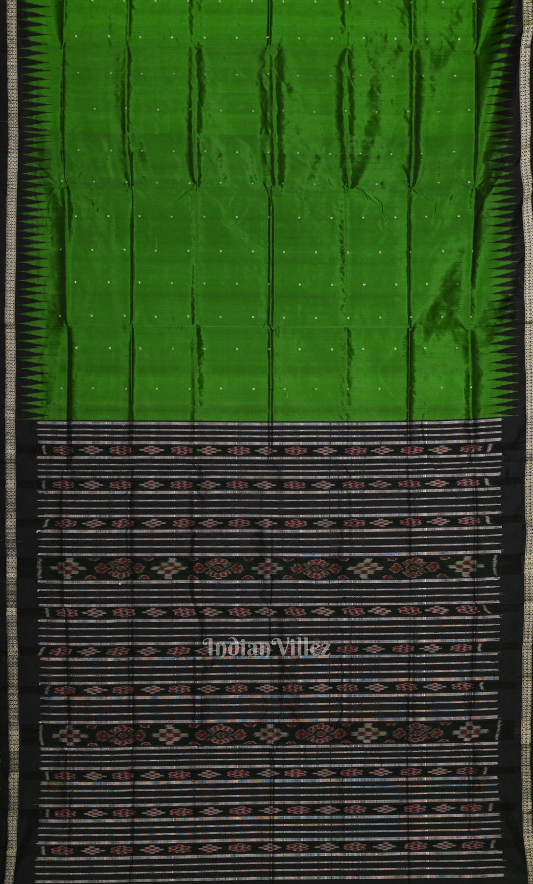 Green Black Butta Design Bandha Anchal Bomkai Sambalpuri Silk Saree