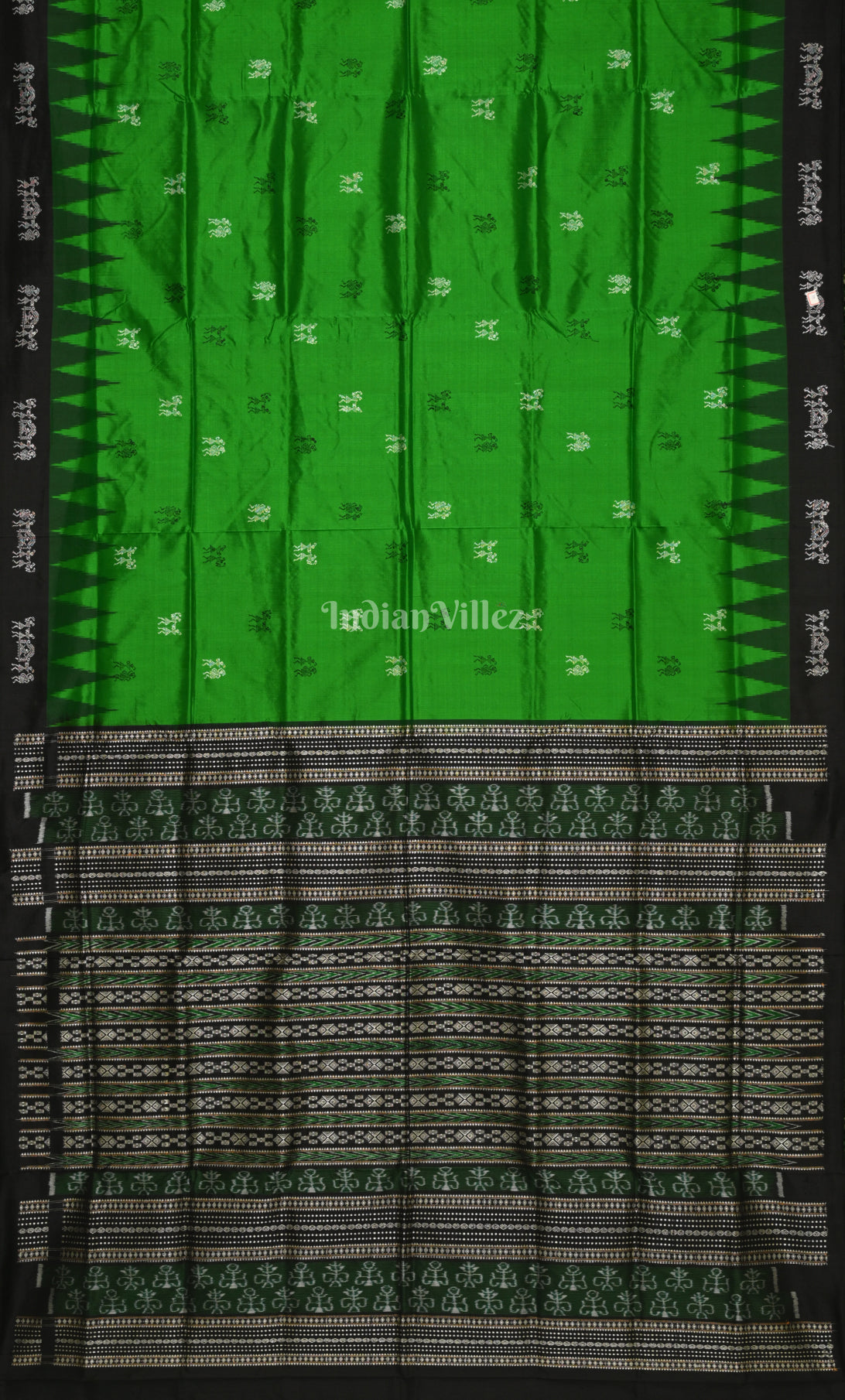 Green Black Tribal Doli Sawari Odisha Ikat Bomkai Sambalpuri Silk Saree