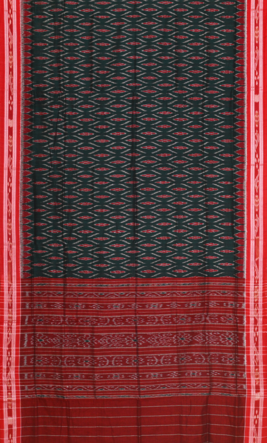 Green Red Odisha Ikat Maniabandha Cotton Saree