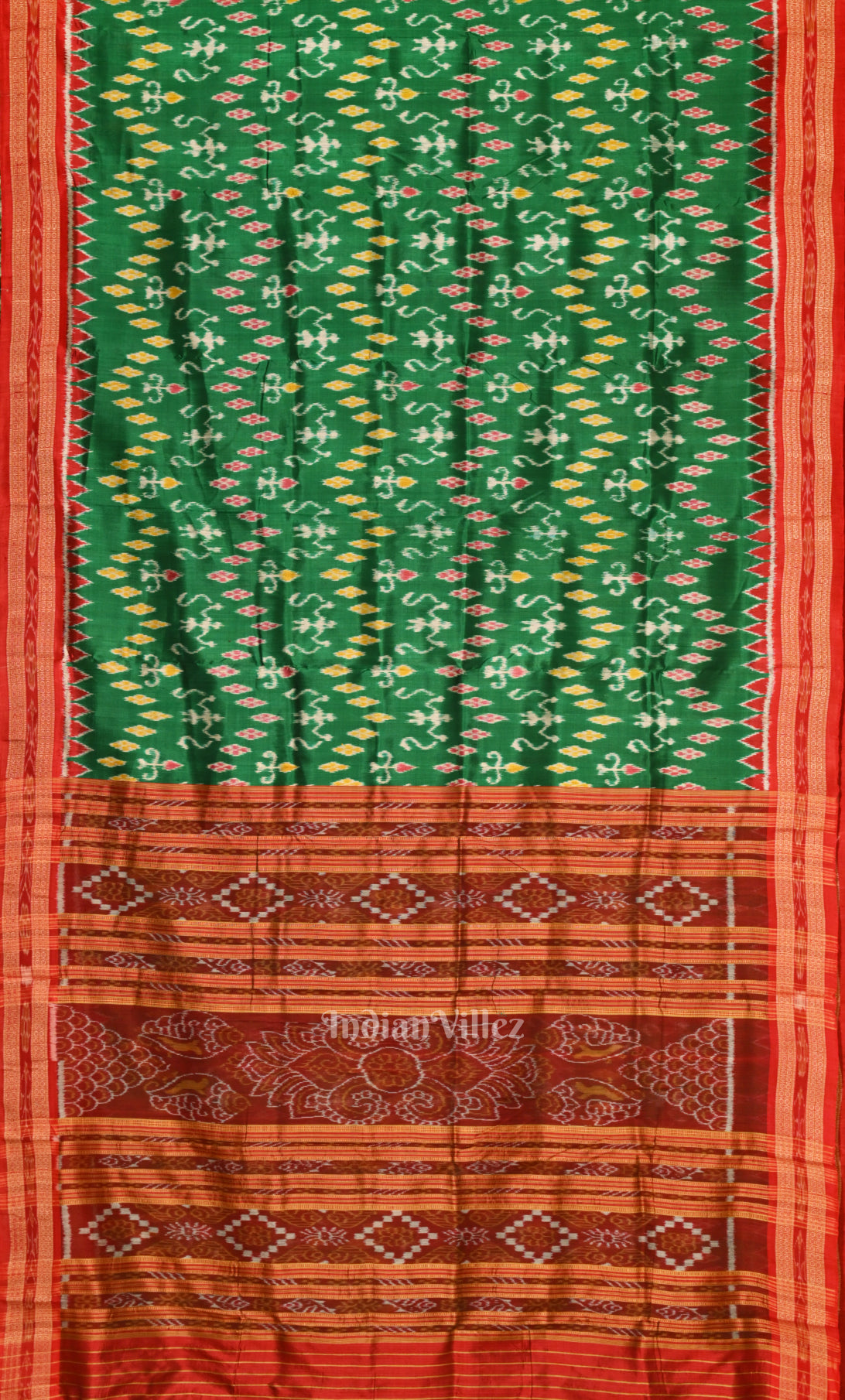 Green Red Tribal Theme Odisha Ikat Khandua Silk Saree