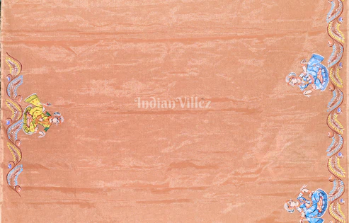 Light Orange Krishna Rasa Leela Hand-Painted Pattachitra Saree (Tissue)