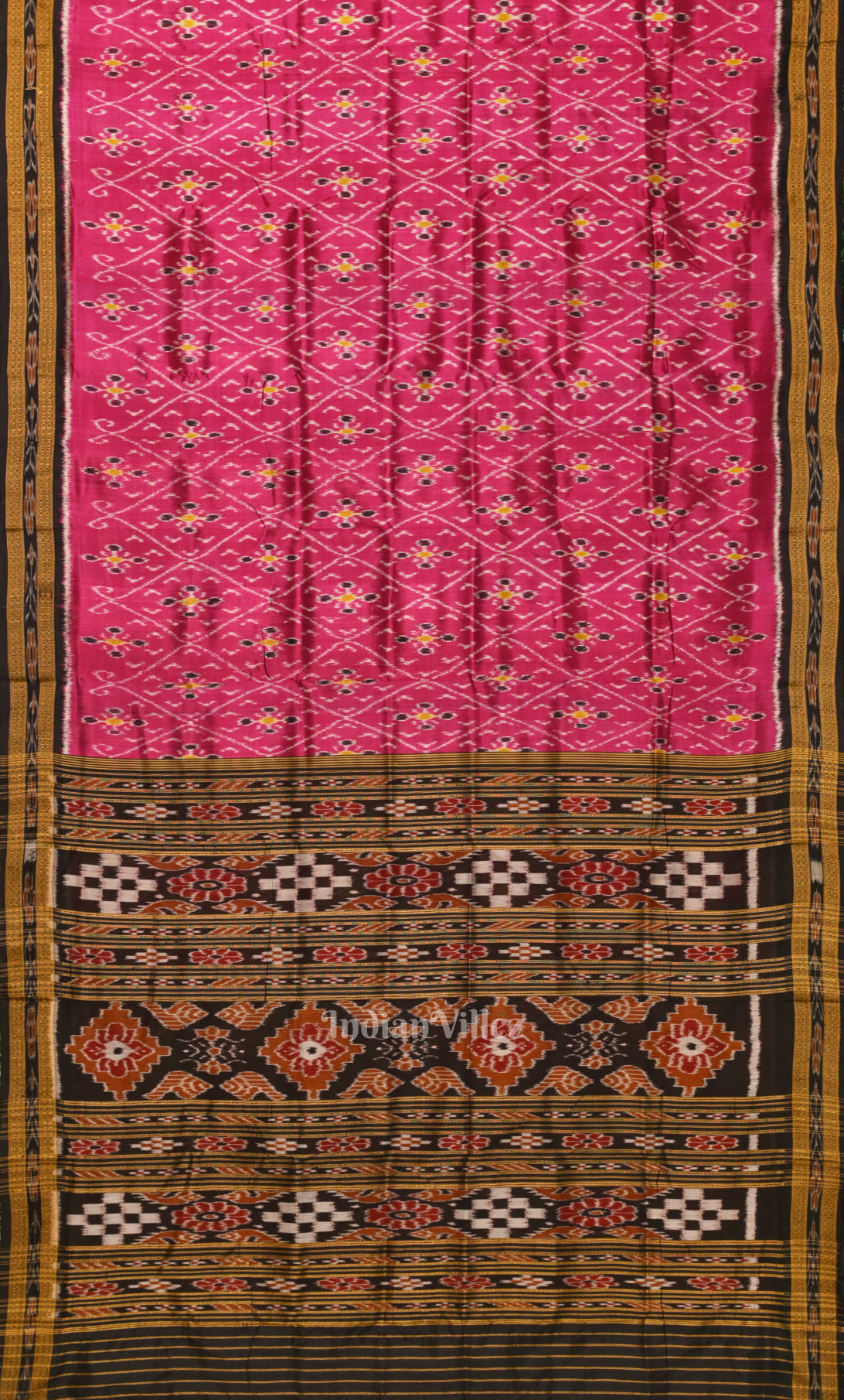 Magenta Pink Black Tribal Theme Odisha Ikat Khandua Silk Saree