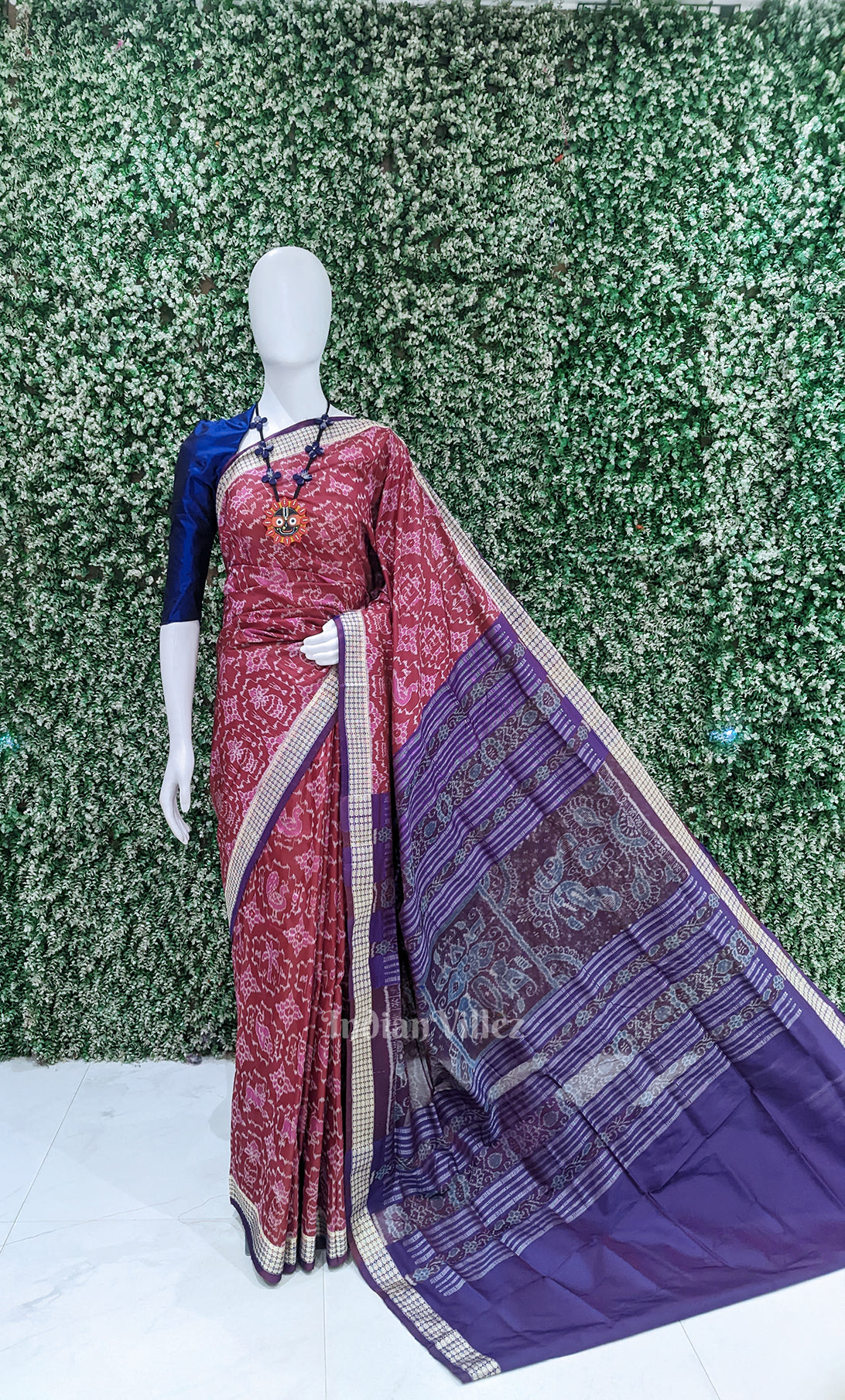 Maroon Purple Odisha Ikat Sambalpuri Silk Saree