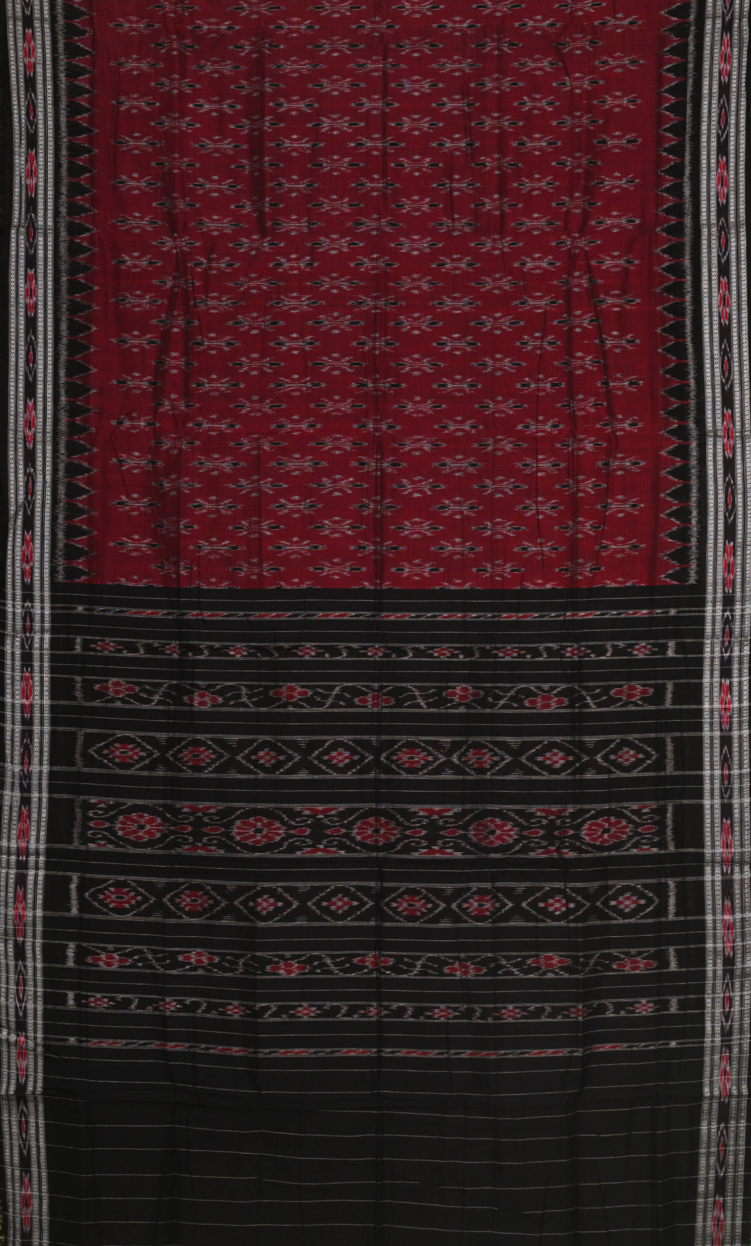 Maroon Red Black Odisha Ikat Maniabandha Cotton Saree
