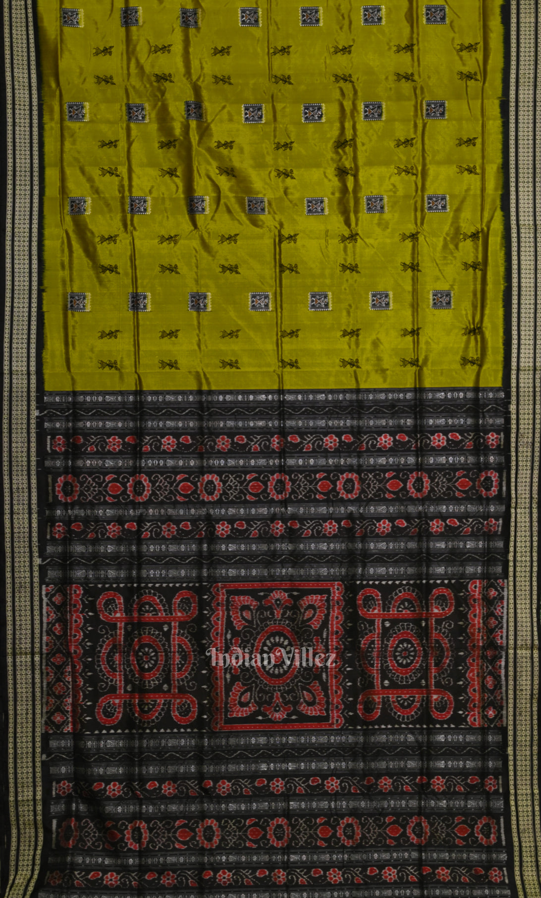 Mehendi Green Black Tribal Theme Sambalpuri Silk Saree