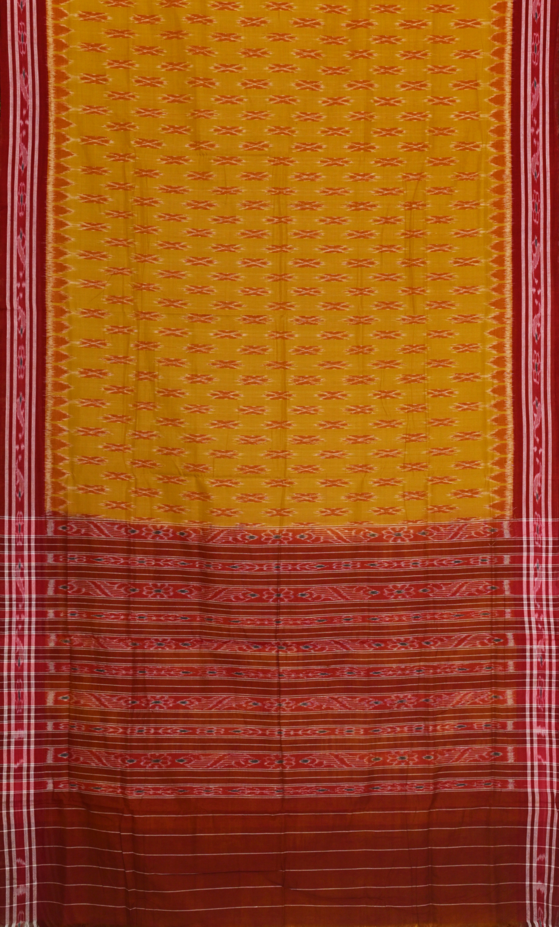 Red Mustard Yellow Odisha Ikat Maniabandha Cotton Saree