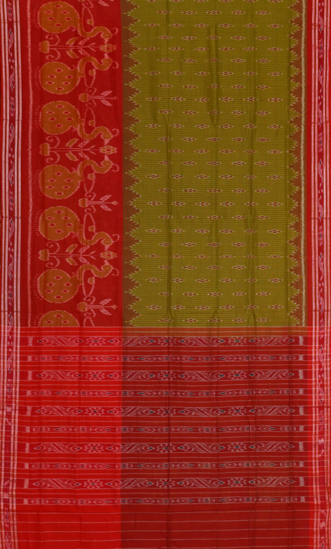 Mehendi Green Red Odisha Ikat Maniabandha Cotton Saree