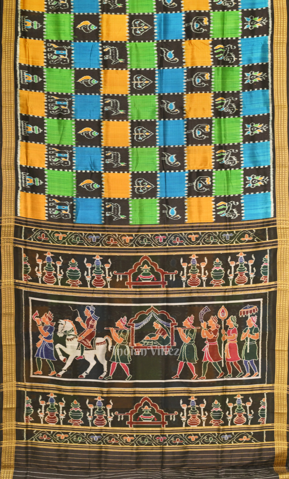 Parrot Green Black Kathiphera Odisha Ikat Khandua Silk Saree