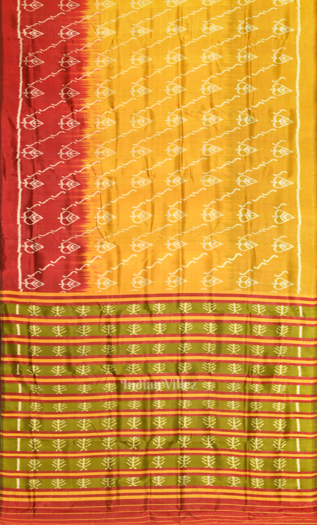 Red Mustard Yellow Odisha Ikat Maniabandha Cotton Saree