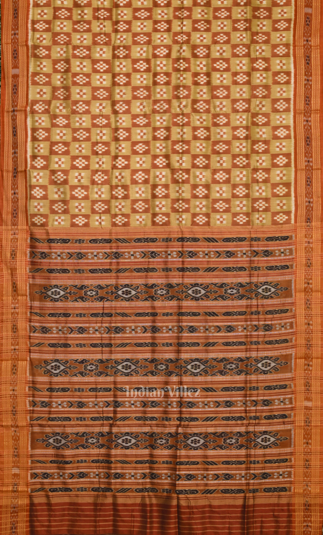 Olive Green Mustard Yellow Pasapali Odisha Ikat Khandua Silk Saree