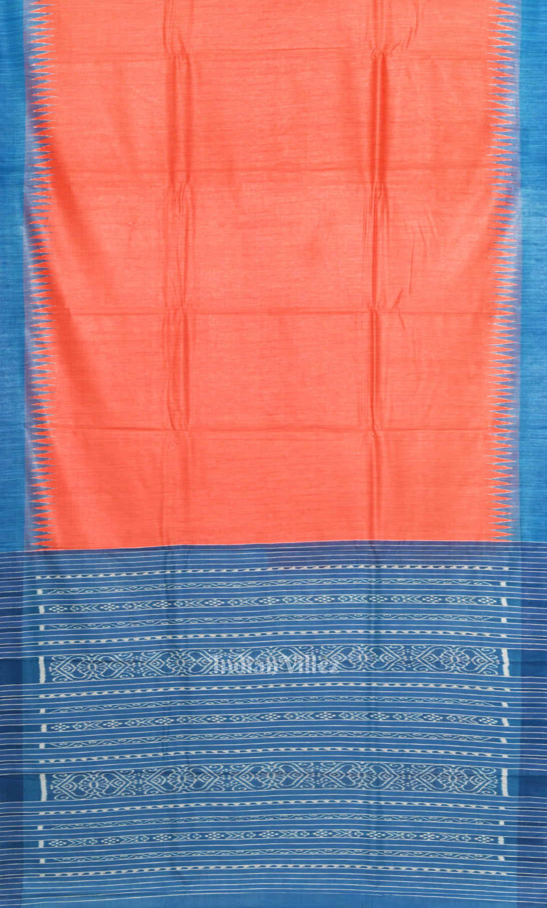 Blue Red Pasapali Border Odisha Ikat Sambalpuri Cotton Saree