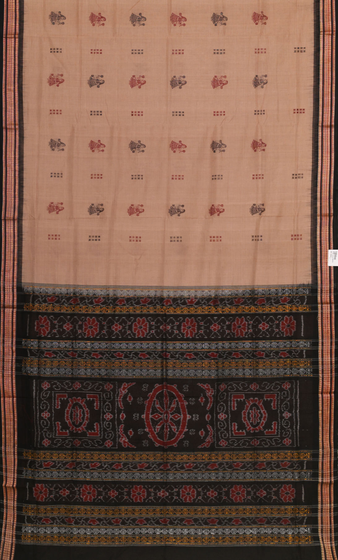 Pastel Beige Black Doll Theme Odisha Ikat Bomkai Cotton Saree quantity