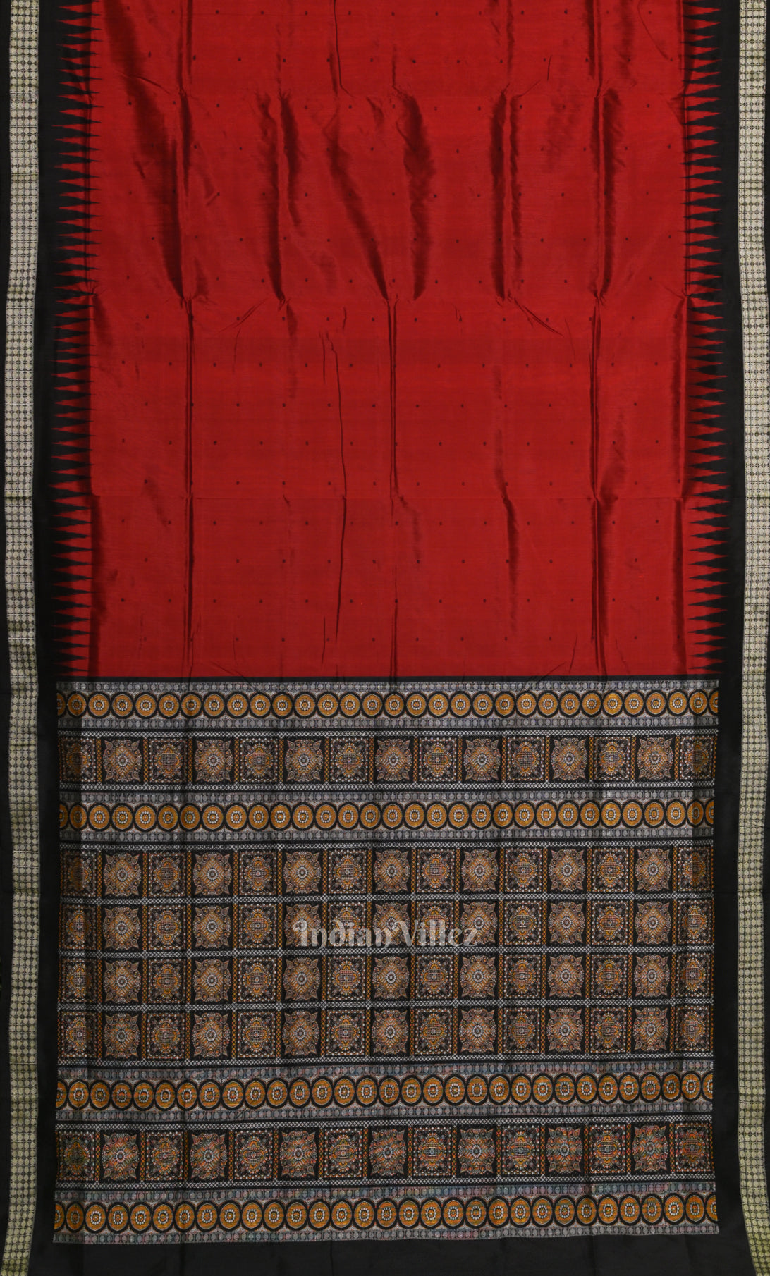 Red Black Butta Design Odisha Ikat Bomkai Sambalpuri Silk Saree