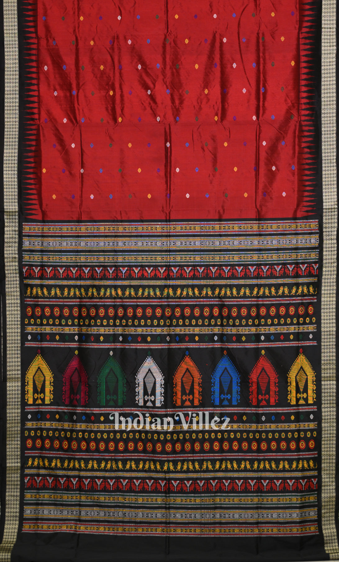 Red Black Dolabedi Bomkai Sambalpuri Ikat Silk Saree