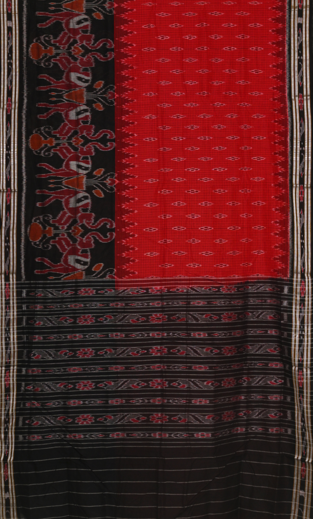 Red Black Odisha Ikat Maniabandha Cotton Saree
