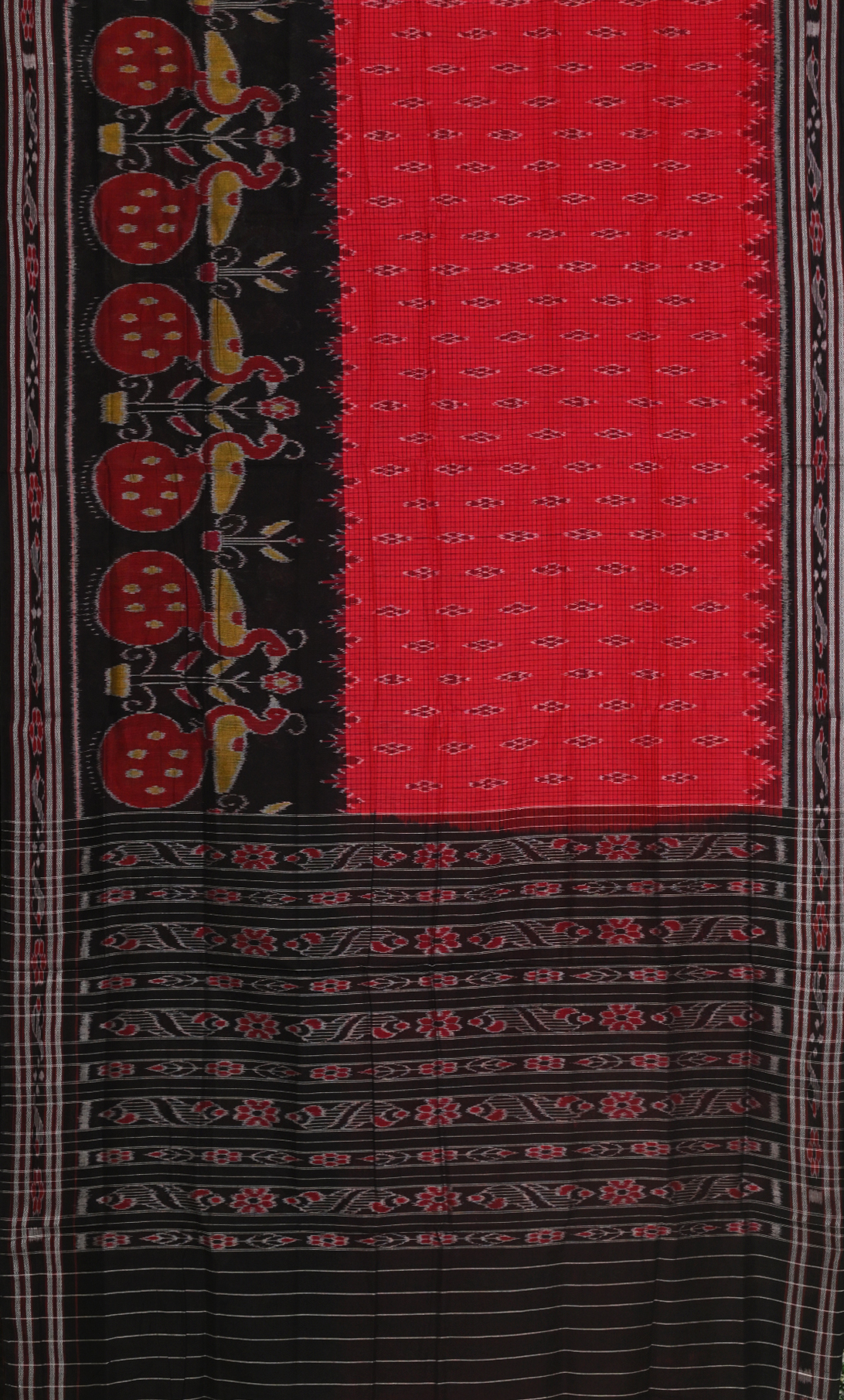 Red Black Mayur Chandrika Odisha Ikat Maniabandha Cotton Saree