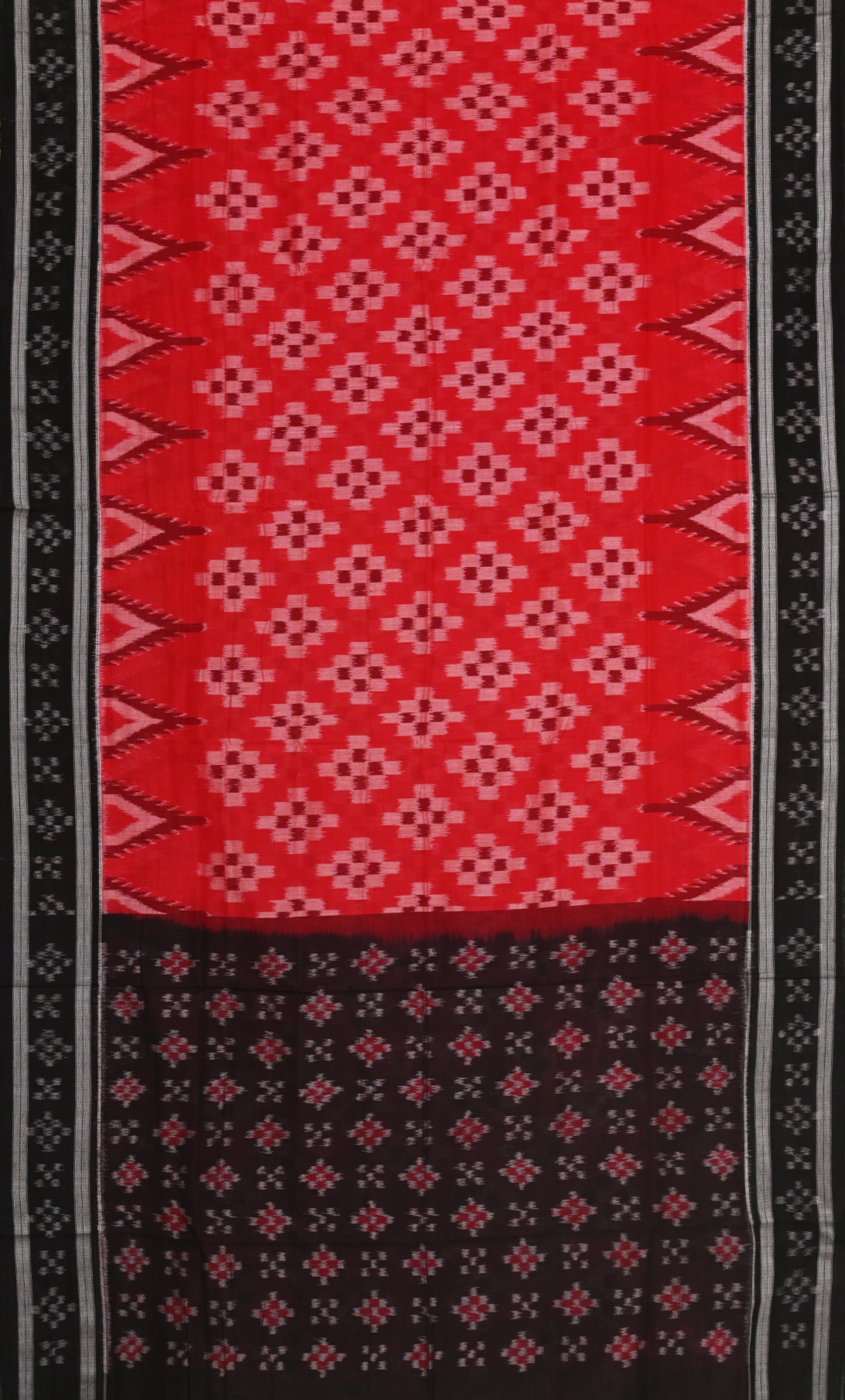 Red Black Pasapali Odisha Ikat Sambalpuri Cotton Saree