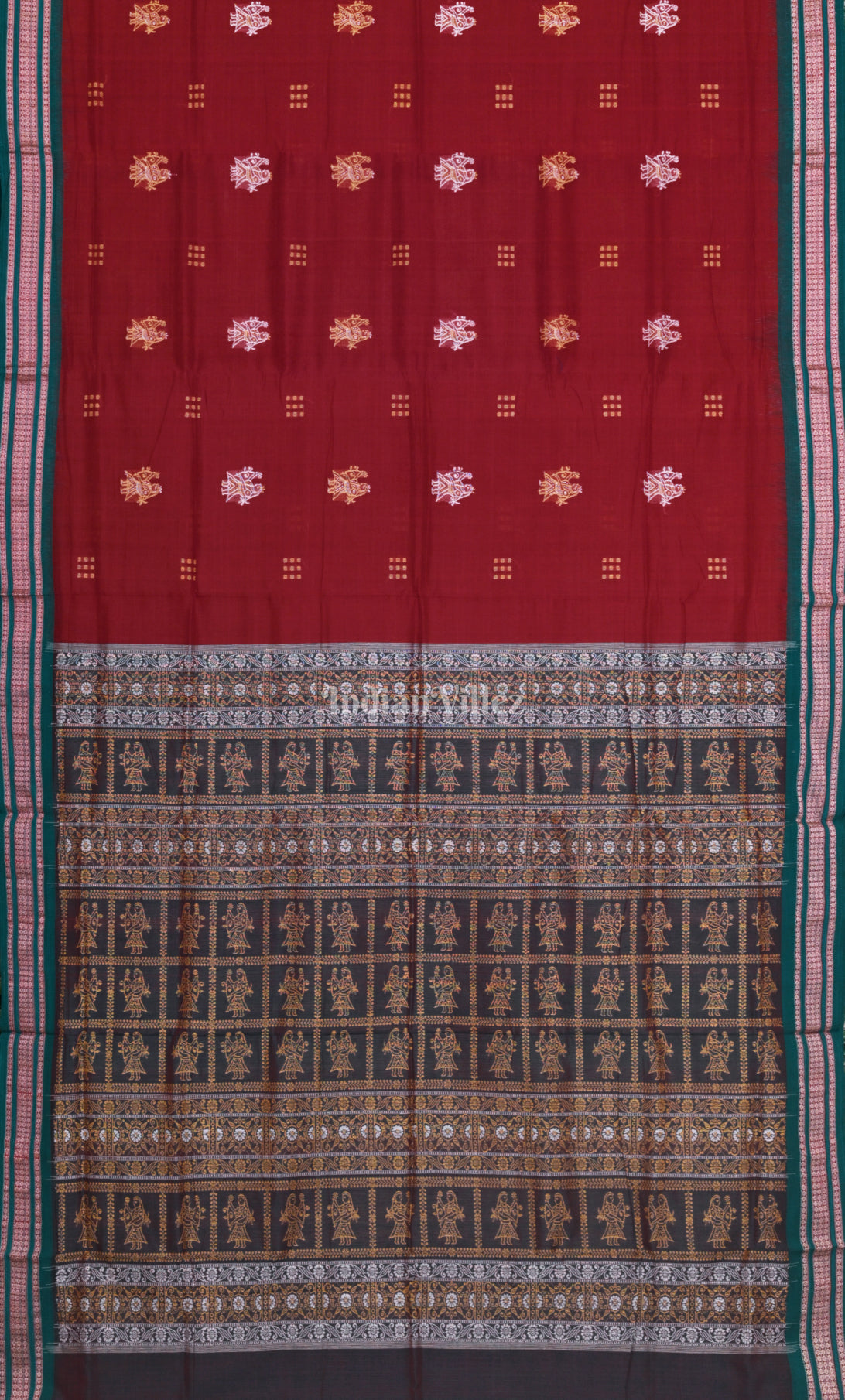 Red Green Dual Tone Doll Theme Odisha Ikat Bomkai Cotton Saree