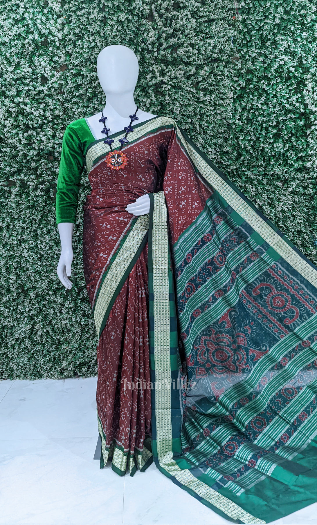 Green Red Odisha Ikat Maniabandha Cotton Saree