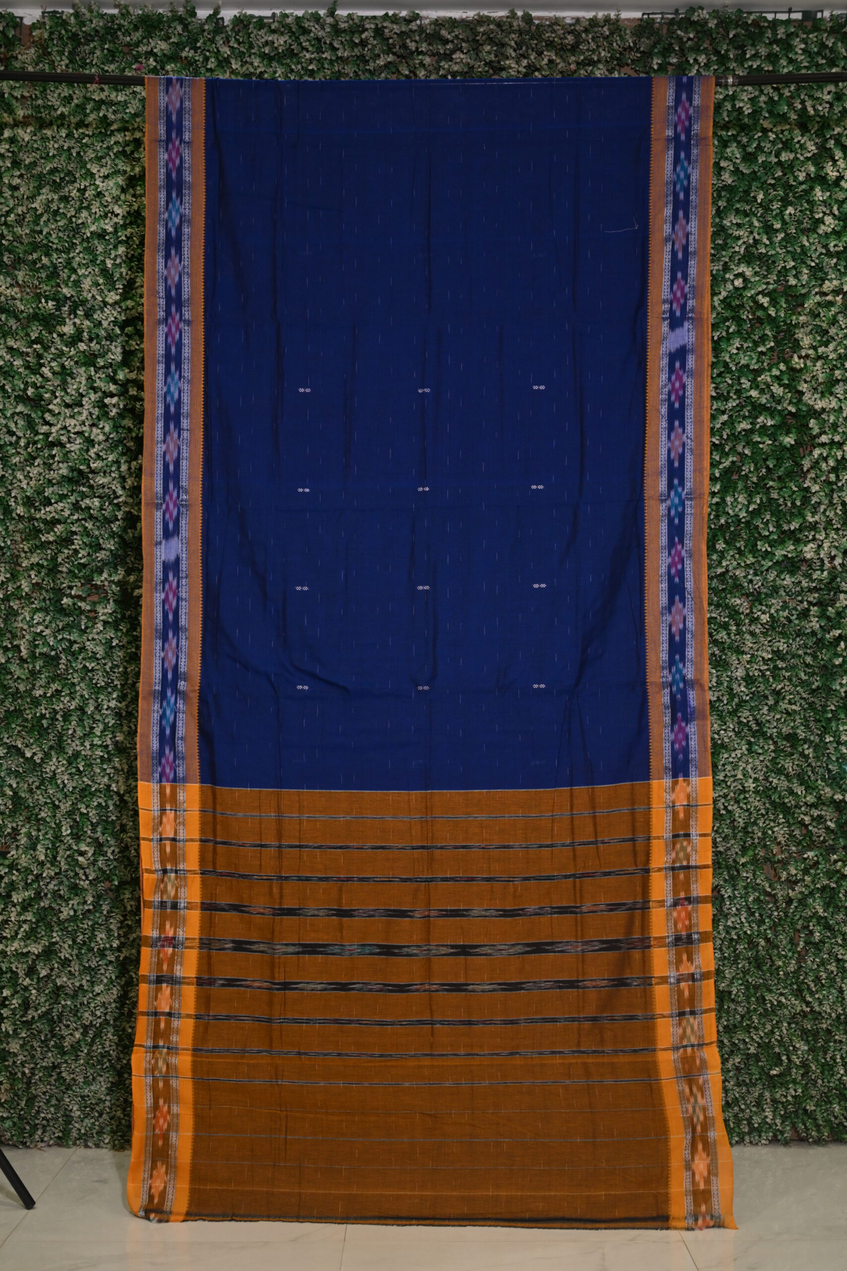Royal Blue Brown Odisha Ikat Maniabandha Cotton Saree