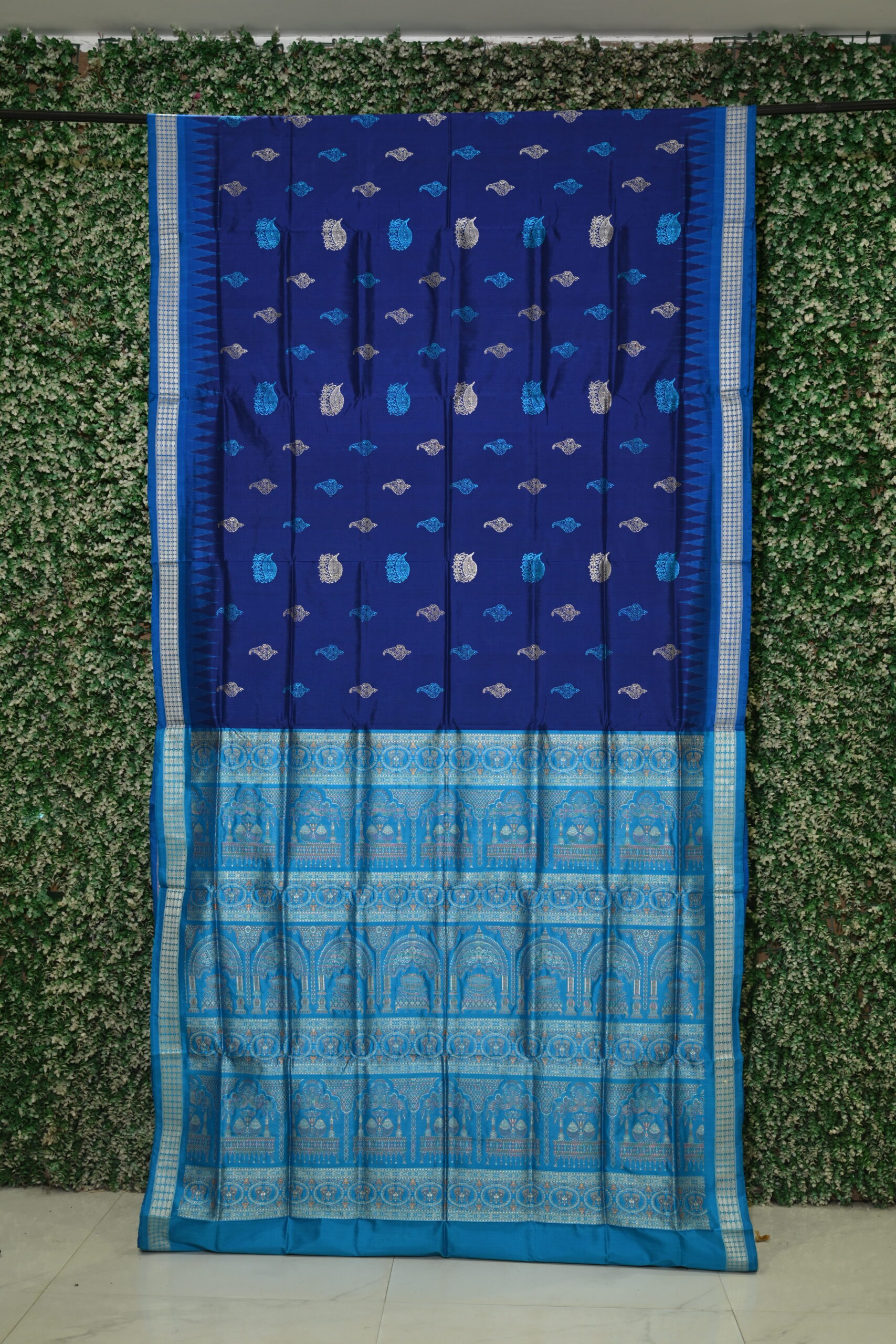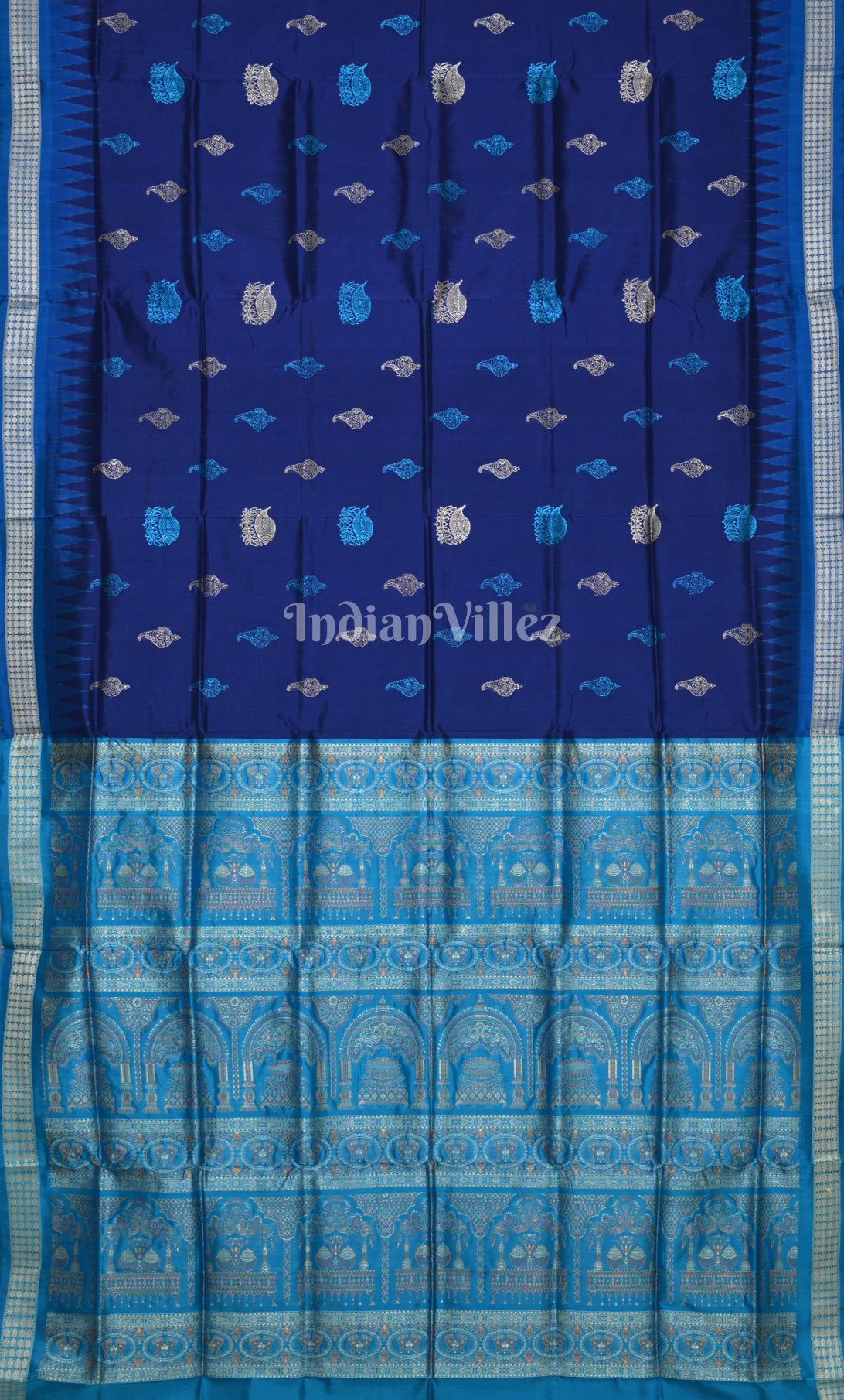 Royal Blue Odisha Ikat Bomkai Sambalpuri Silk Saree