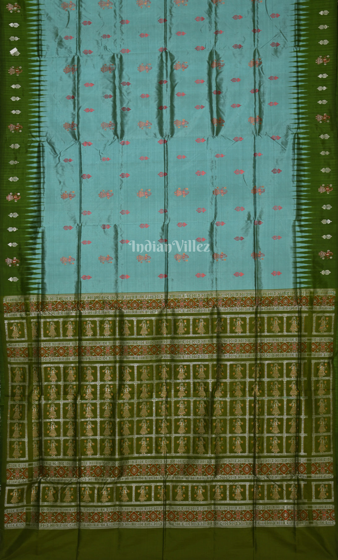 Sea Blue Olive Green Odisha Ikat Bomkai Sambalpuri Silk Saree with Doll Aanchal quantity