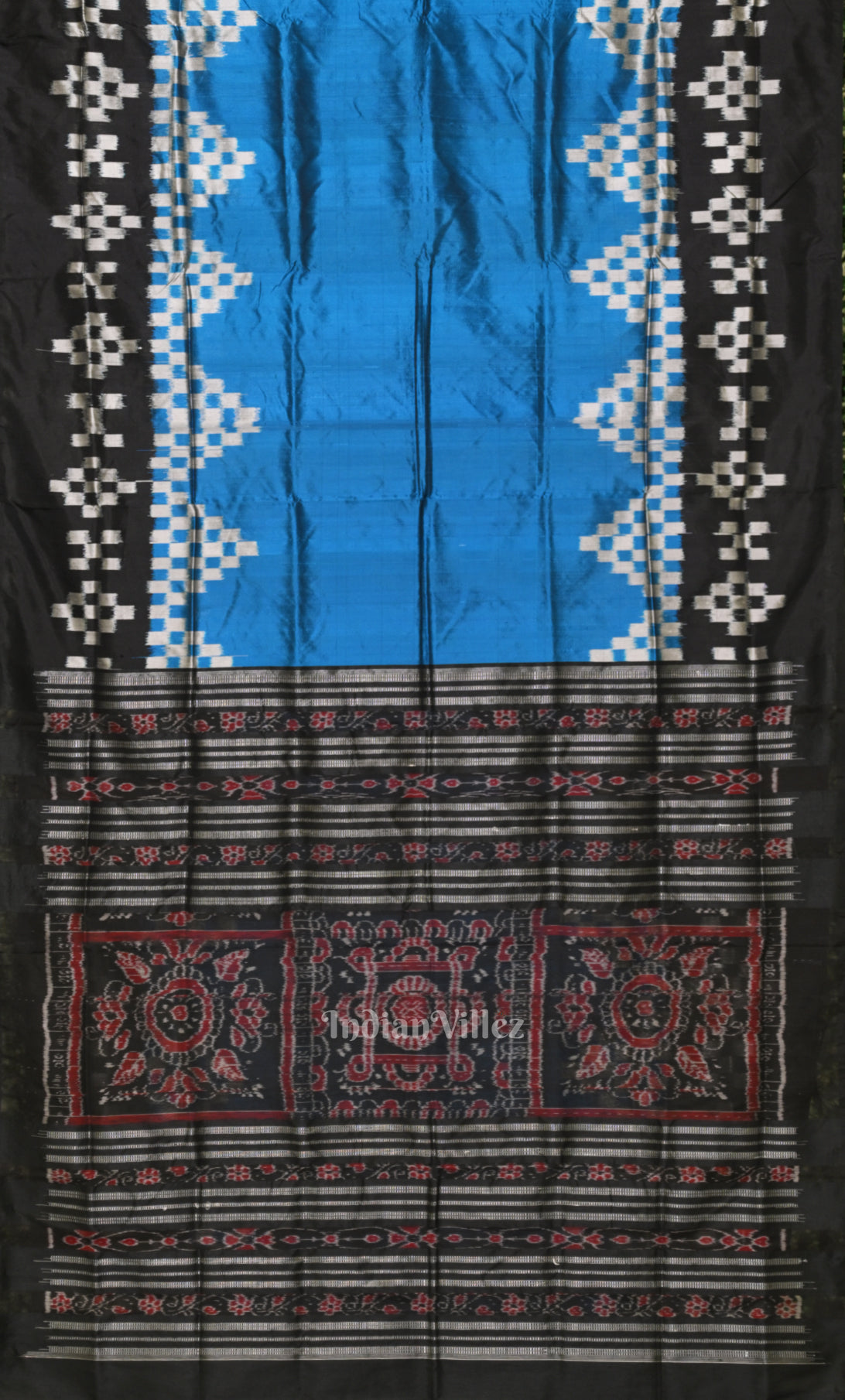 Sky Blue Black Pasapali Odisha Ikat Contemporary Designer Saree