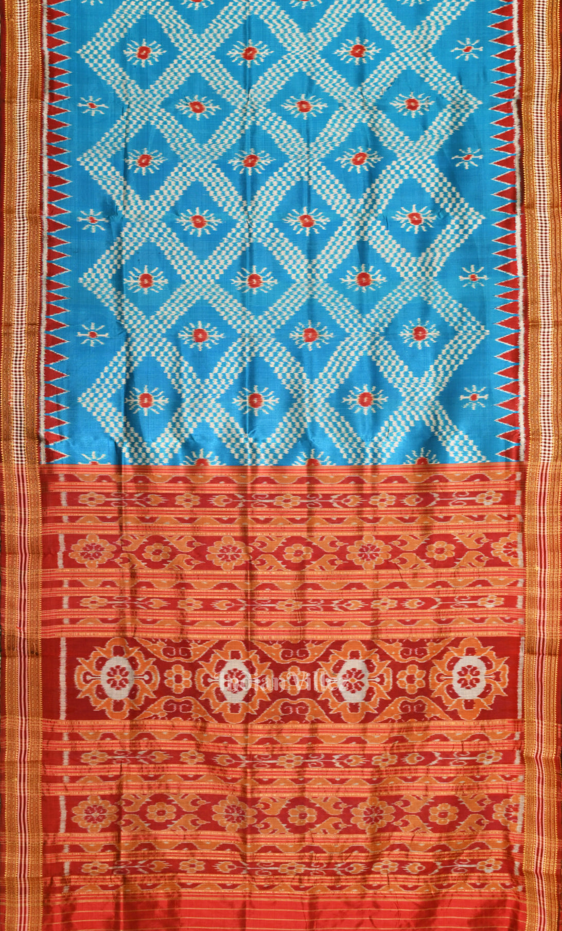 Sky Blue Red Tarabali Odisha Ikat Khandua Silk Saree