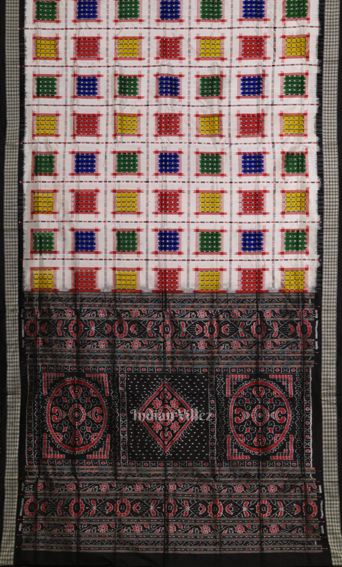 White Black Ashwini Odisha Ikat Sambalpuri Silk Saree