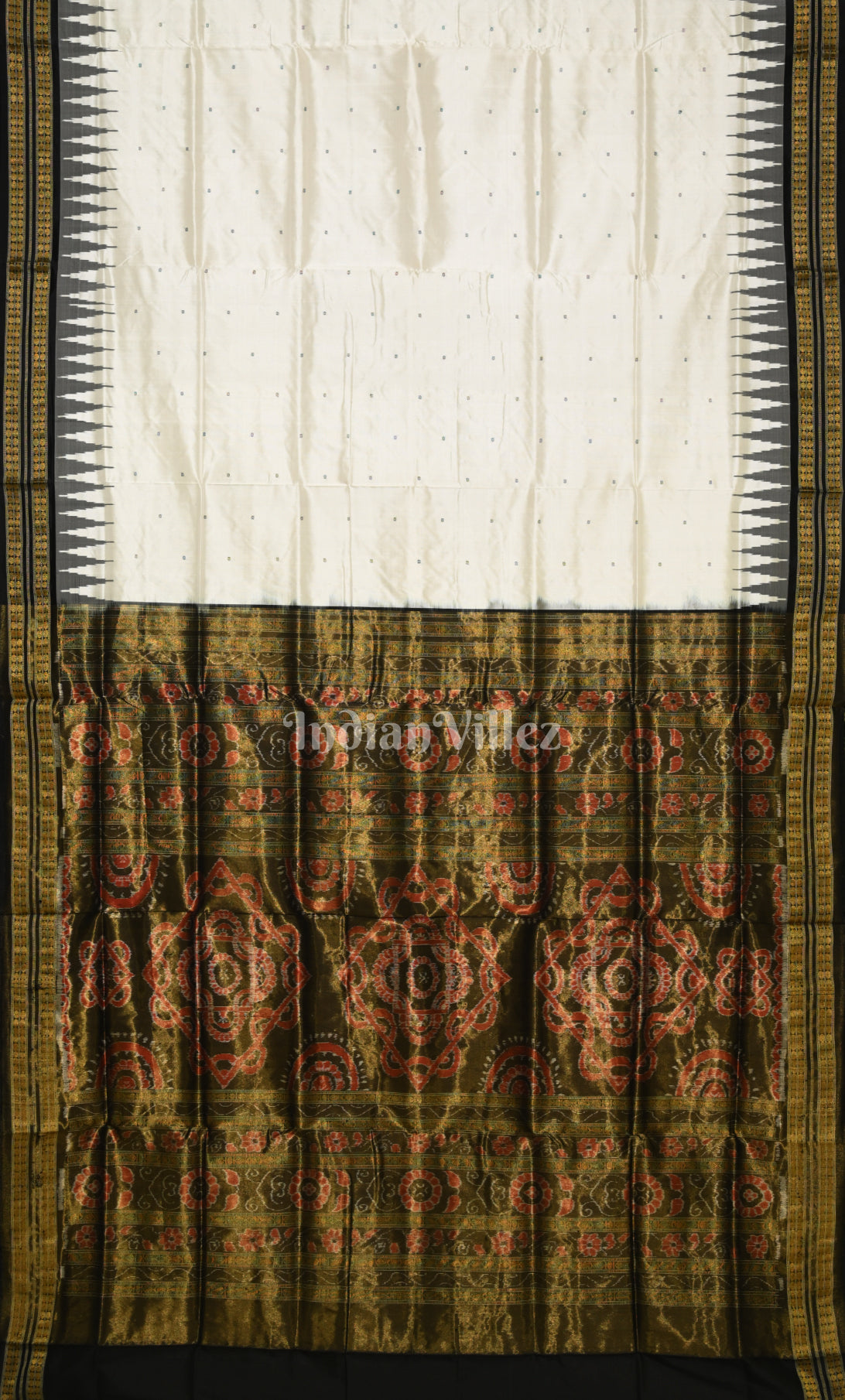 White Black Buti Odisha Ikat Bomkai Half Tissue Silk Saree