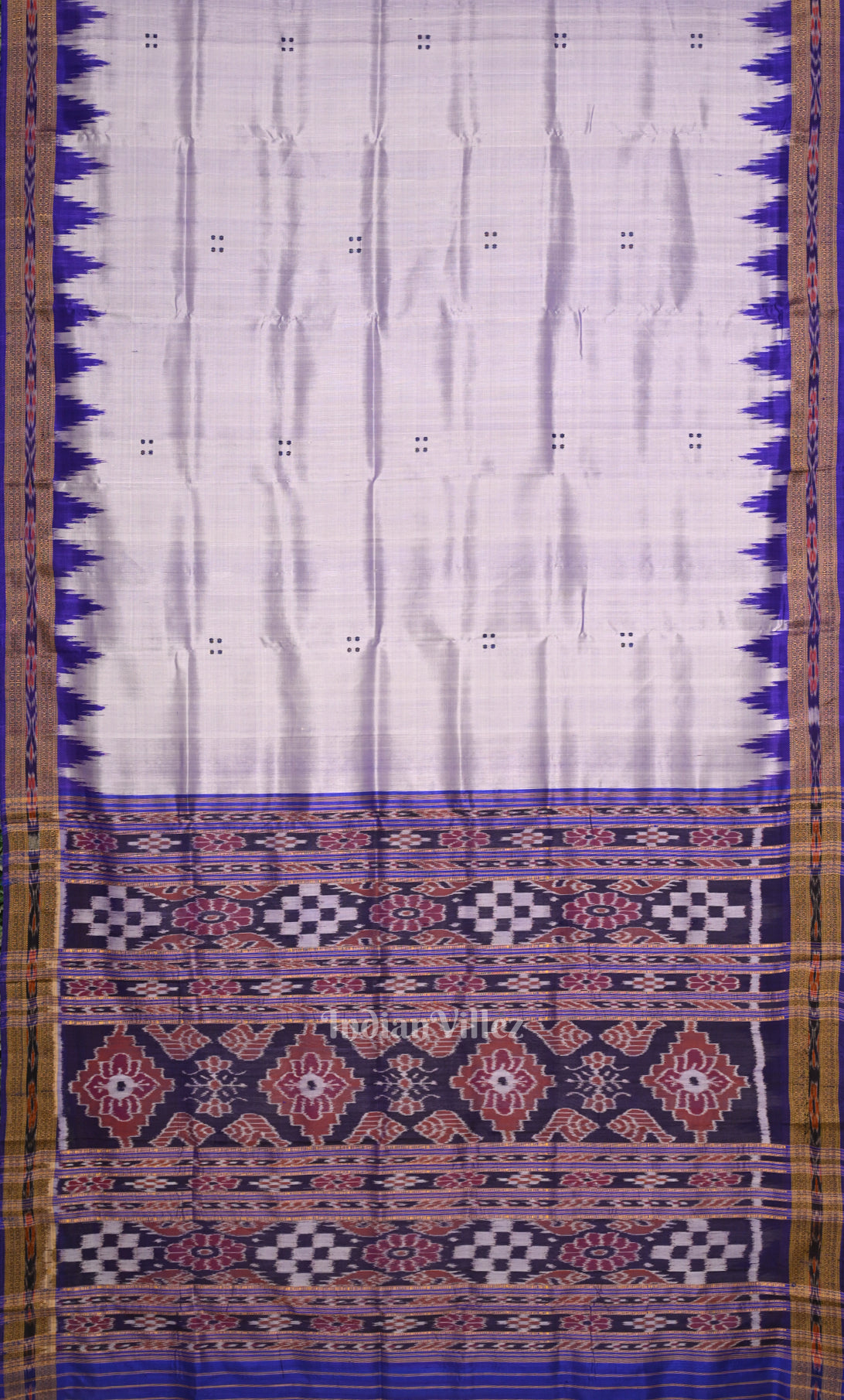 White Blue Buti Design Odisha Ikat Khandua Silk Saree