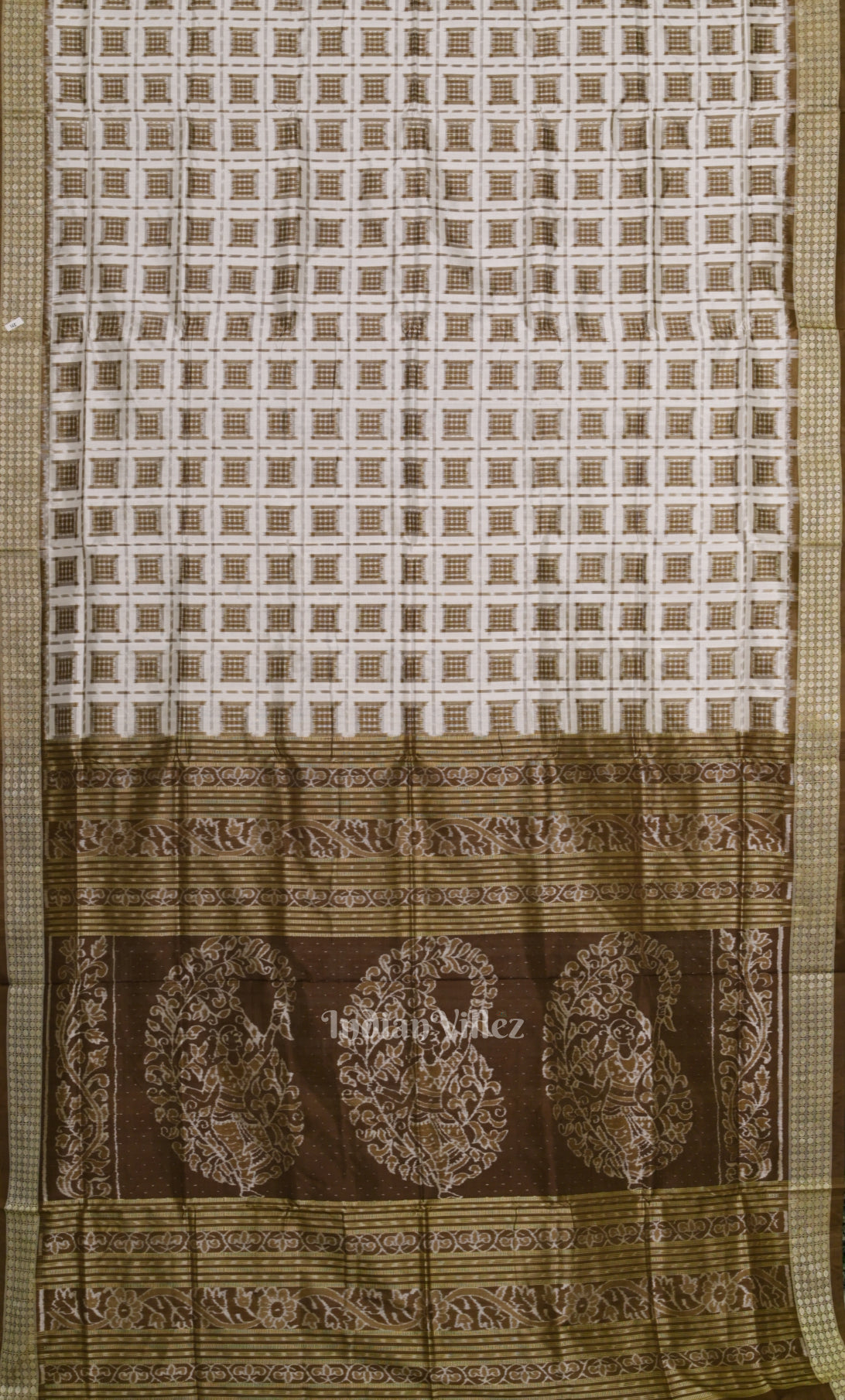 White Brown Ashwini Odisha Ikat Sambalpuri Silk Saree