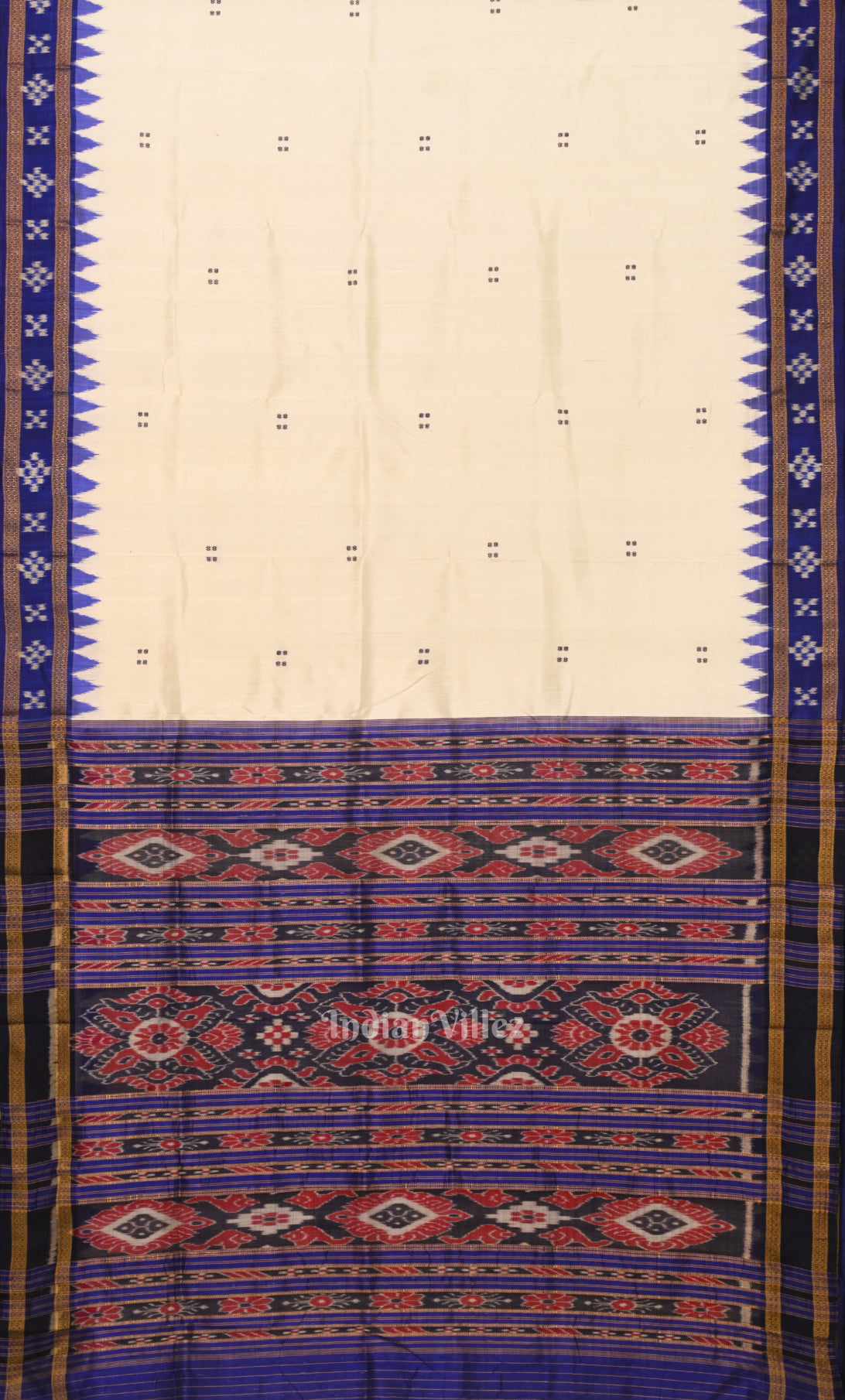 White Navy Blue Mayur Chandrika Odisha Ikat Maniabandha Cotton Saree