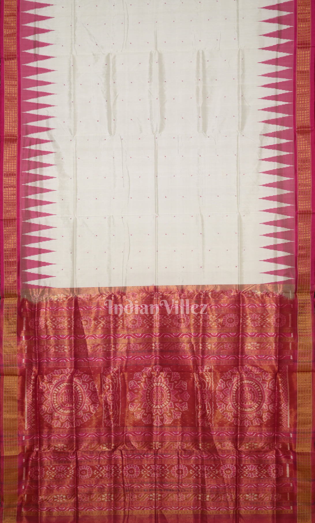 White Red Mayur Chandrika Odisha Ikat Maniabandha Cotton Saree