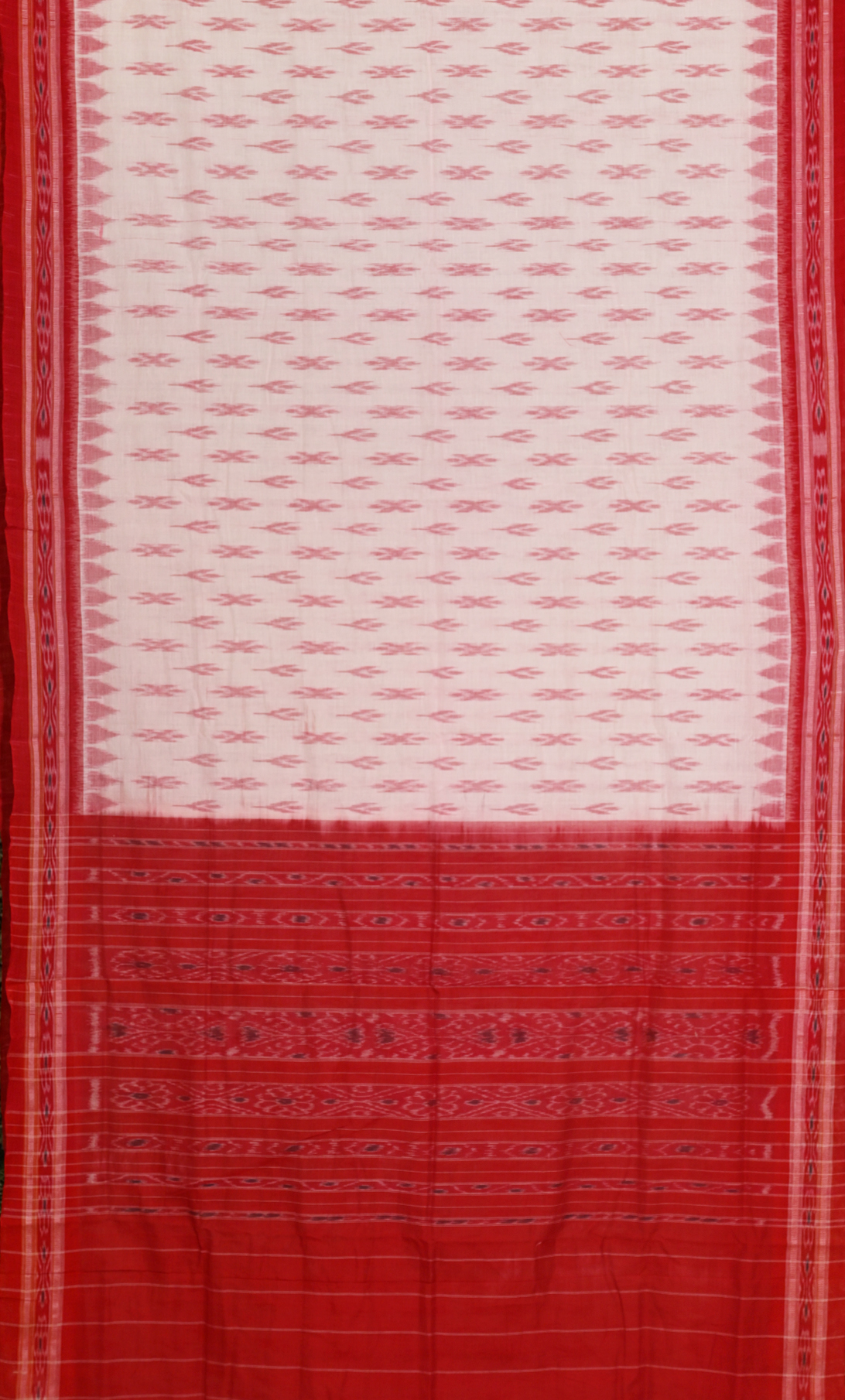 White Red Pasapali Border Odisha Ikat Sambalpuri Cotton Saree