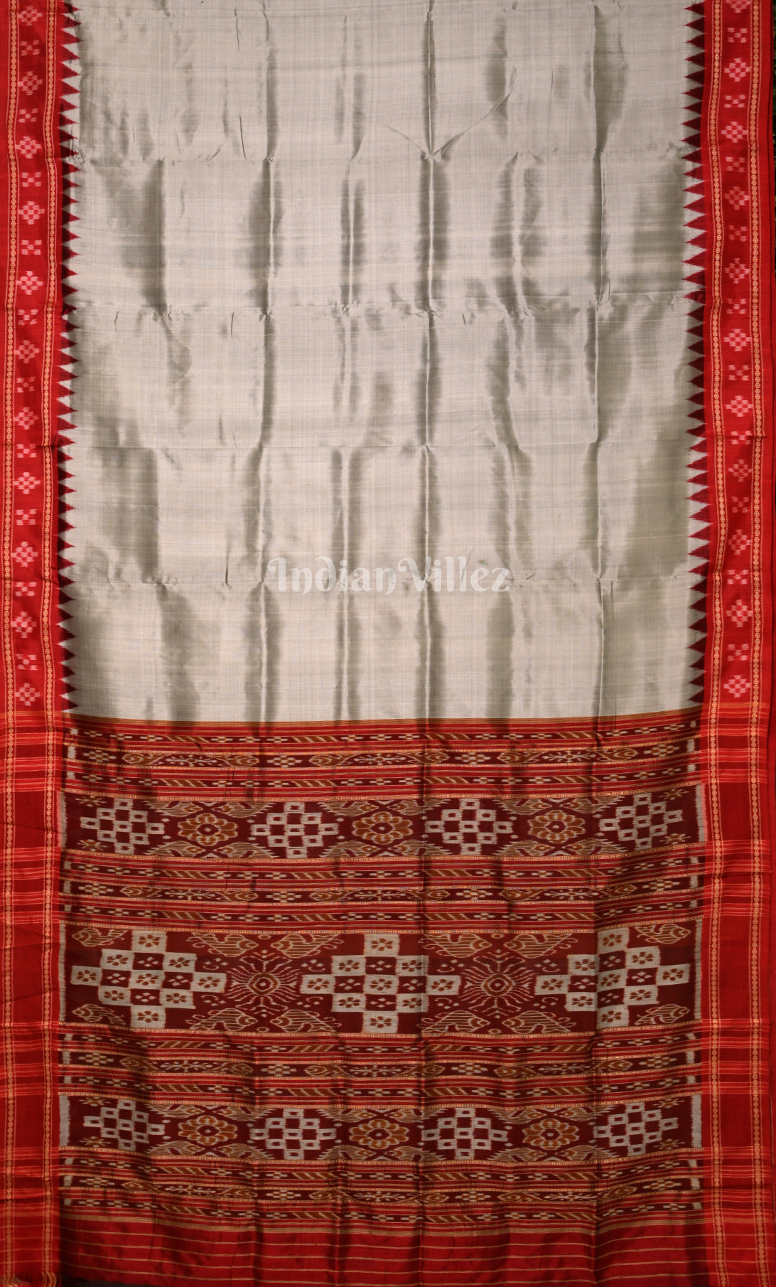 White Red Pasapali Border Odisha Ikat Khandua Silk Saree